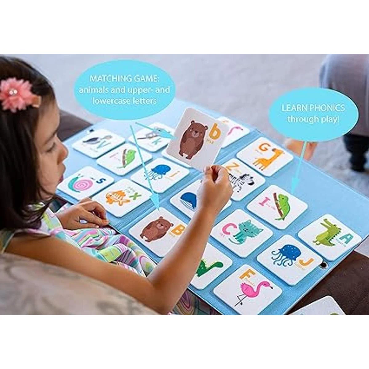 Juegos para niños: juega un juego a juego para niños de 2 a 4 años, vinculando las letras mayúsculas y minúsculas con las tarjetas flash de animales. Dale la vuelta a las tarjetas para crear y jugar juegos de memoria para niños de 3 años en adelante. Crea tu propio juego de pesca con los partidos en la bolsa de algodón con cordón, o juega bingo para dos personas para niños