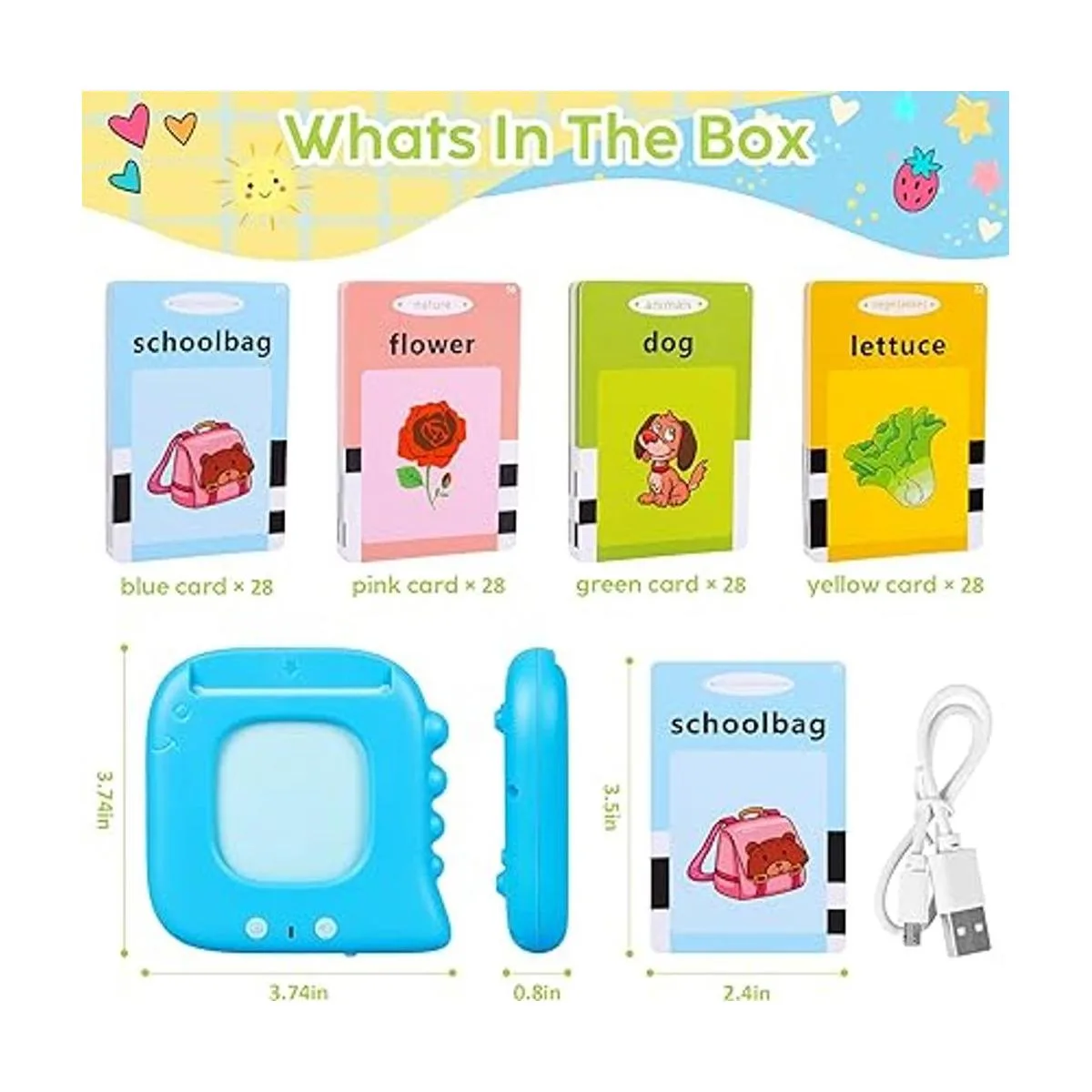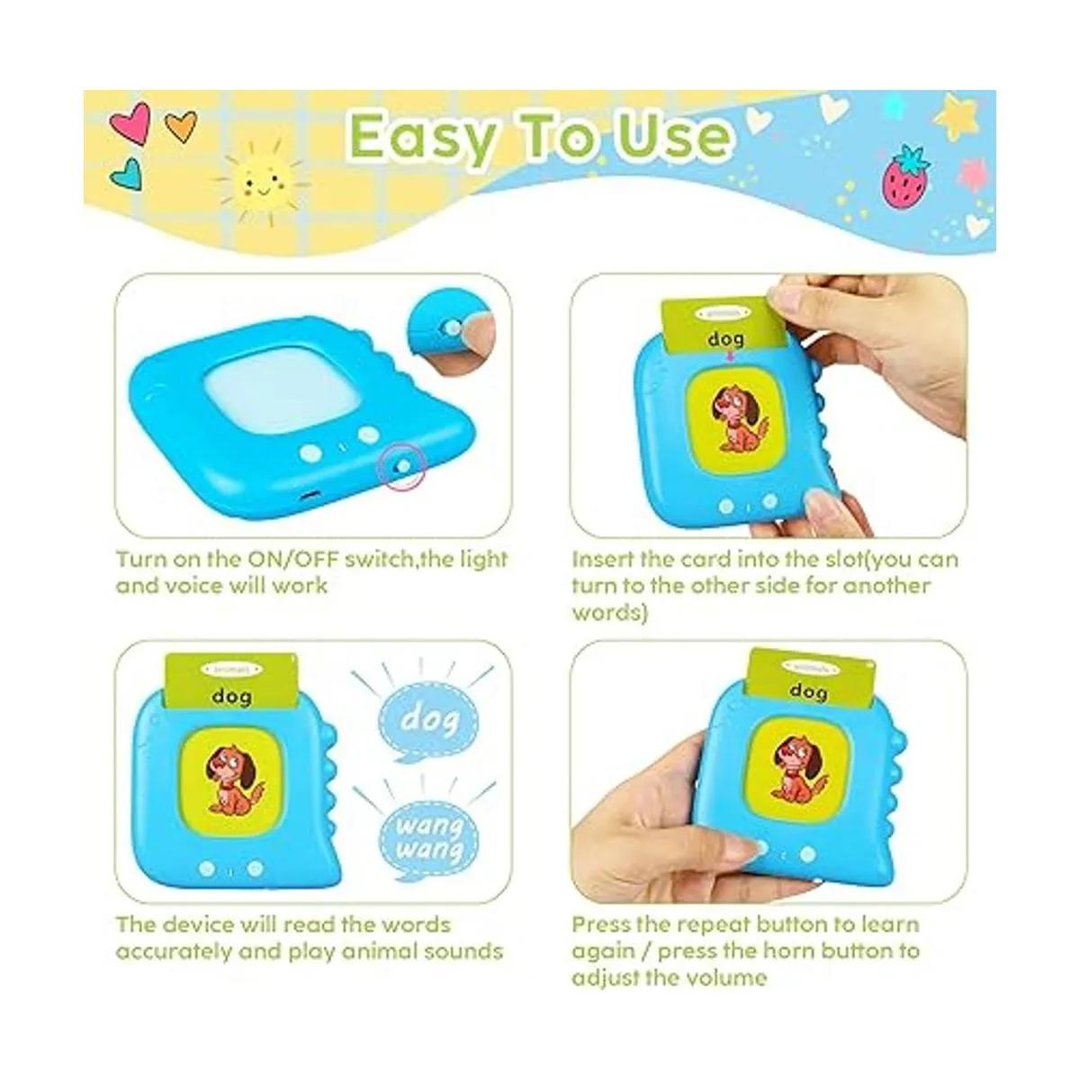 Aprendizaje divertido: este juguete educativo de tarjeta flash parlante, cubre temas como animales, transportes, alimentos, frutas, verduras, disfraces, naturaleza, personas, profesión, formas, etc. Mejora la capacidad cognitiva, ejercita la audición y construye vocabulario para niños.