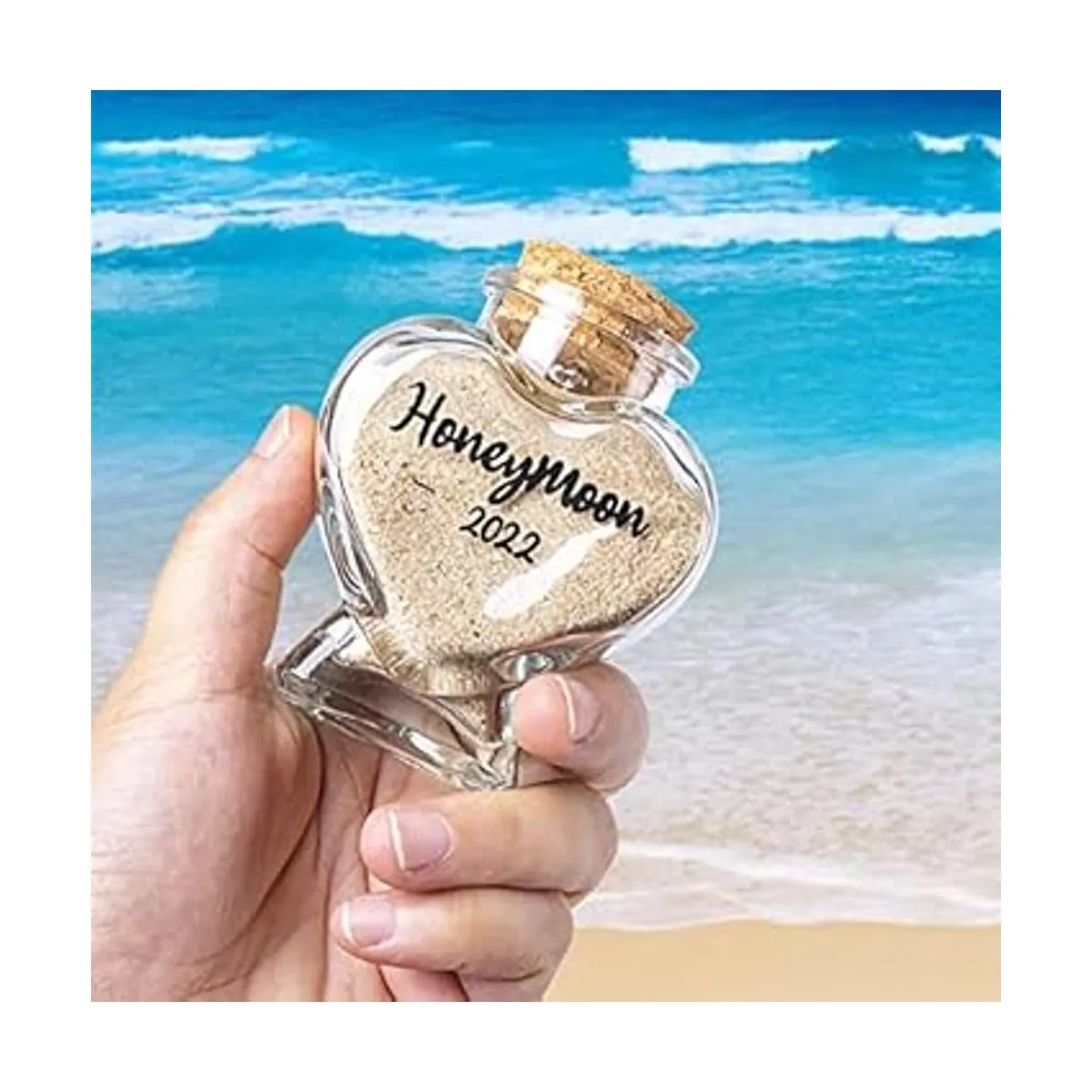 Tarro de recuerdo de arena de luna de miel, regalo de despedida de soltera, regalo de boda, regalo de compromiso, regalo de luna de miel, regalo de viaje para parejas, recién casados, prometido caja de regalo incluida, vidrio de 1.4 fl oz
