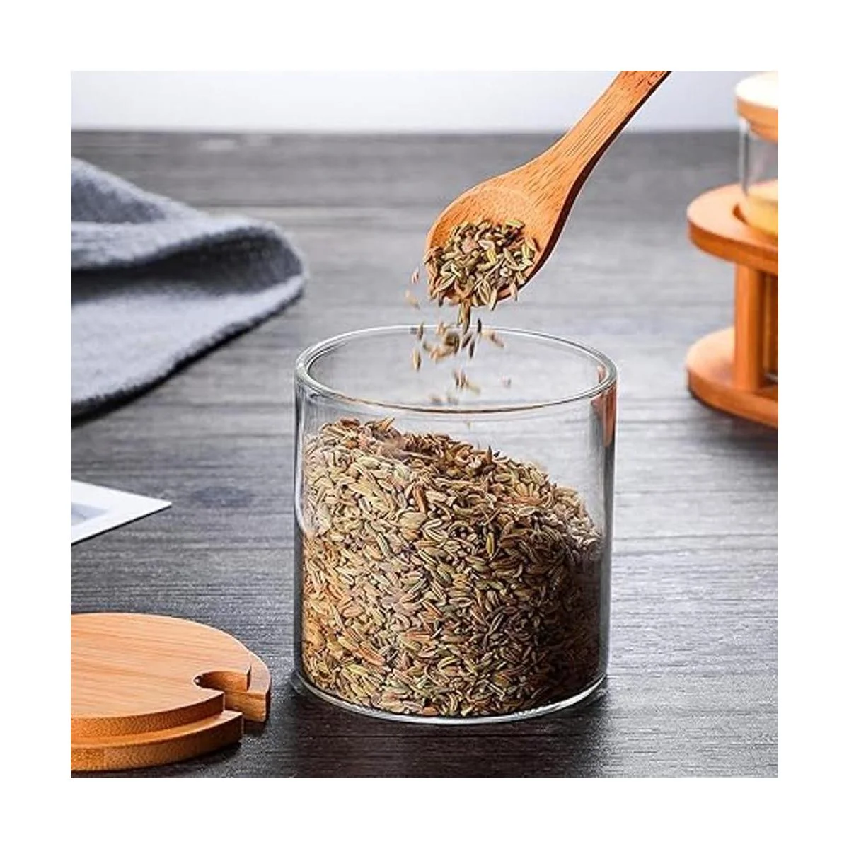 Material de alta calidad: el tarro de condimento está hecho de bambú natural y vidrio de borosilicato. Puede almacenar de forma segura tus especias y condimentos favoritos para mantenerlos lejos del polvo. También puede mantener su cocina ordenada y hermosa.