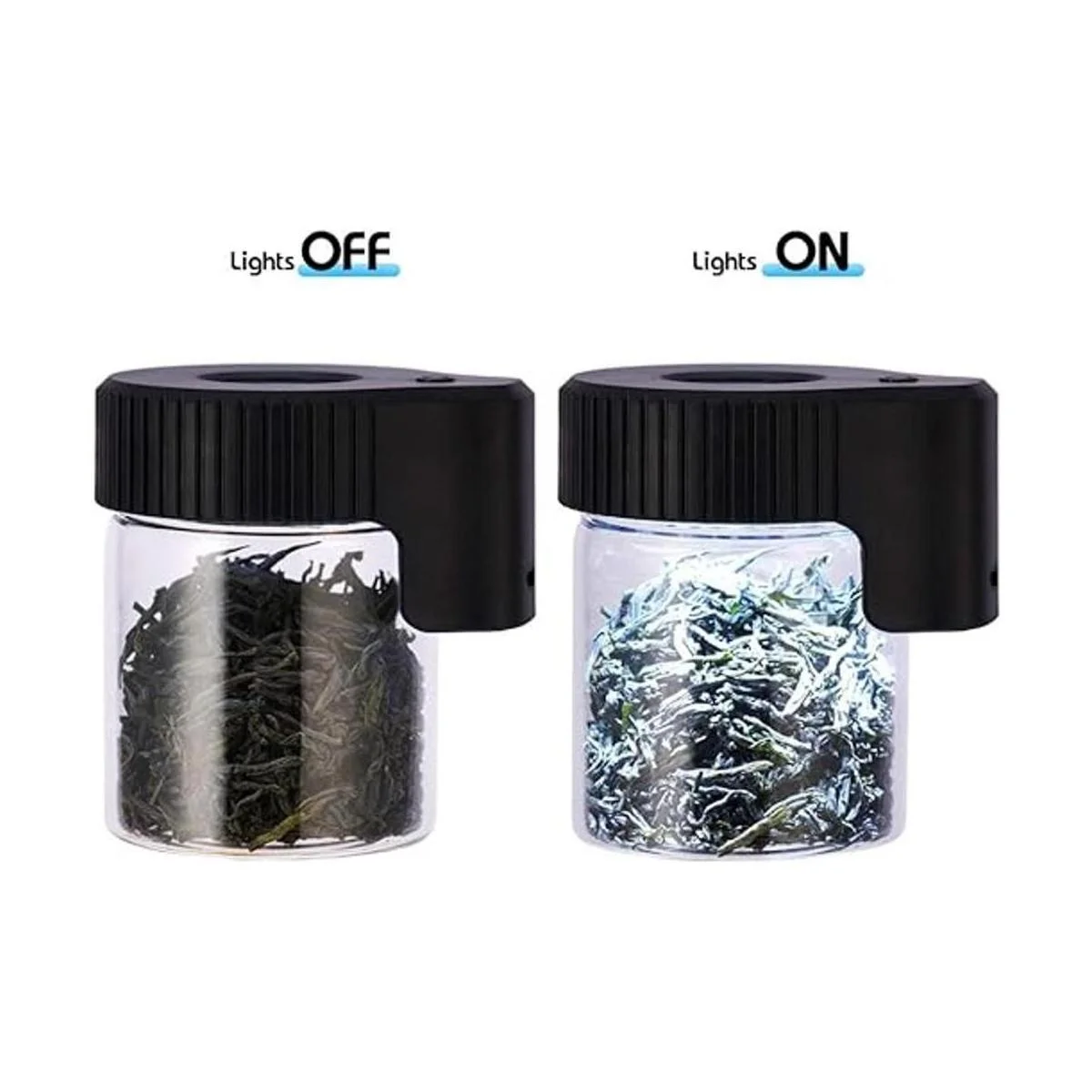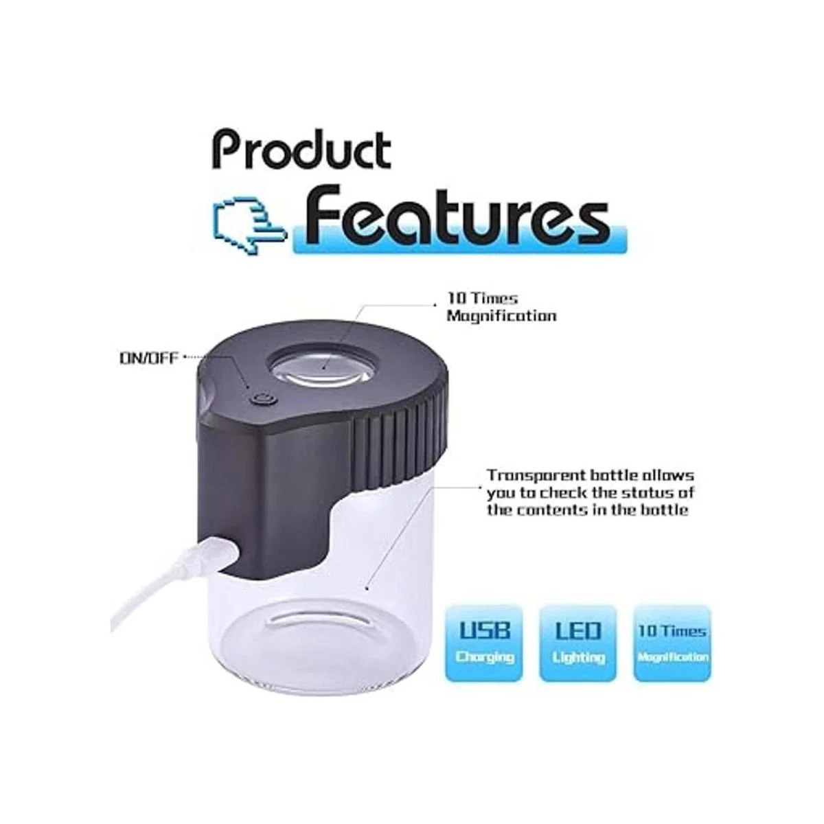 Tarro de visualización de lupa con luz LED, tarro de almacenamiento de vidrio con iluminación transparente con tapa de mag, hermético, a prueba de olores