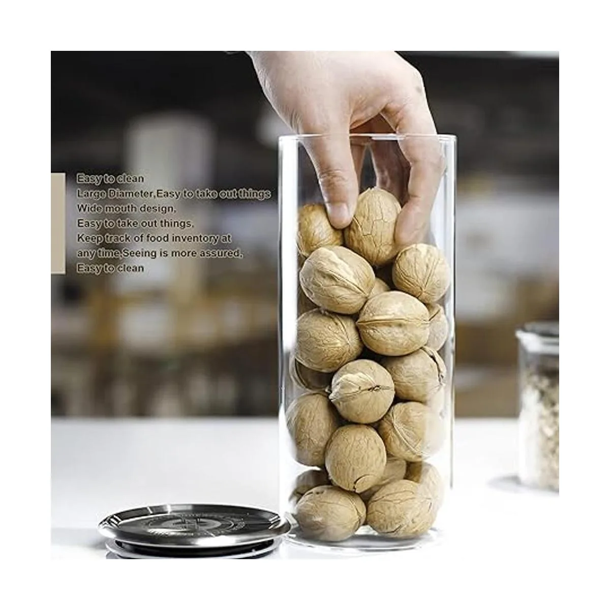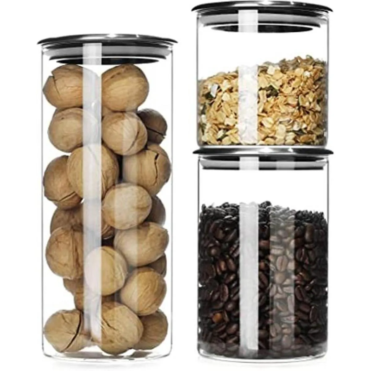 Tarros de almacenamiento de vidrio LUXU, 20 OZ33 OZ54 OZ Juego de 3, frascos de almacenamiento de vidrio hermético con tapa de acero inoxidable, contenedor de almacenamiento transparente apilable, para harina, café, galletas y más.