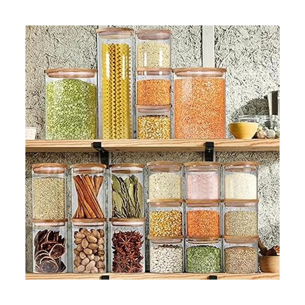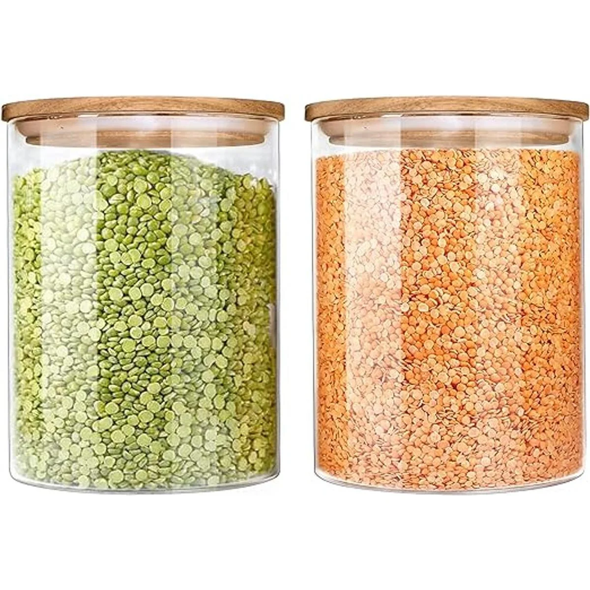 Paquete de 2 unidades de tamaño extragrande: estos recipientes herméticos de cocina están especialmente diseñados para la organización de almacenamiento de alimentos de gran tamaño. Viene en un combo de 2 valores, son recipientes grandes perfectos para una bolsa de arroz de 5 libras. El anillo de silicona hace que la tapa de madera se cierre firmemente, lo que garantiza que los alimentos interiores estén secos y frescos.
