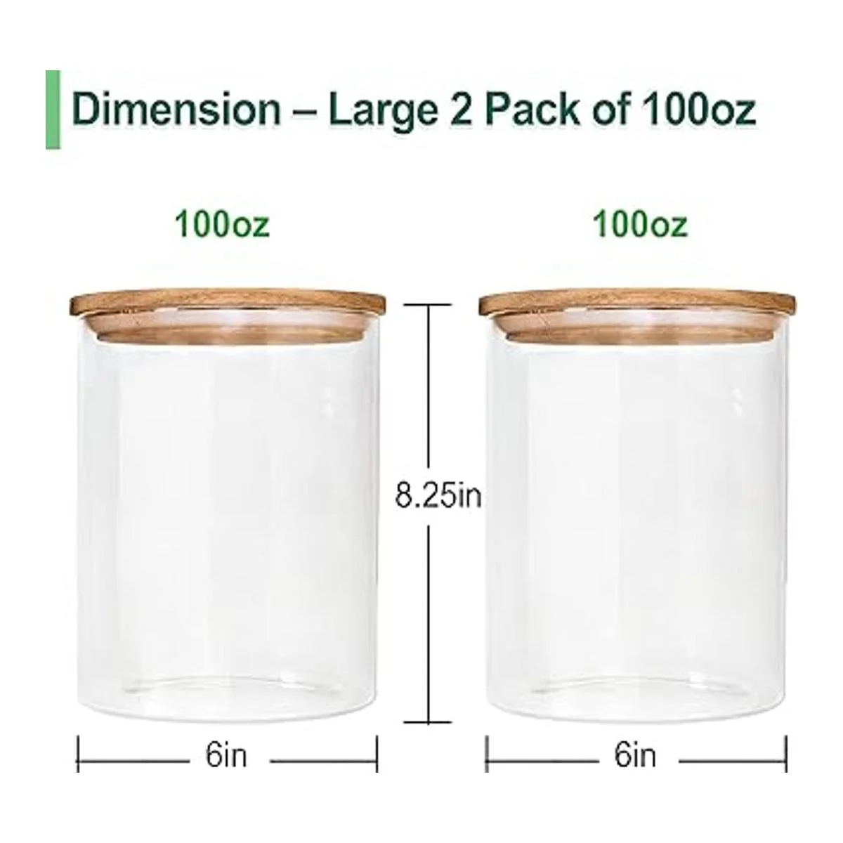 Tarros de vidrio con tapas herméticas, color verde urbano, juego de recipientes de vidrio herméticos grandes con tapas de madera, paquete de 2 recipientes de almacenamiento de alimentos de vidrio de 100 onzas, recipientes de harina