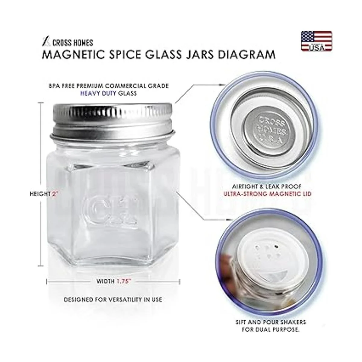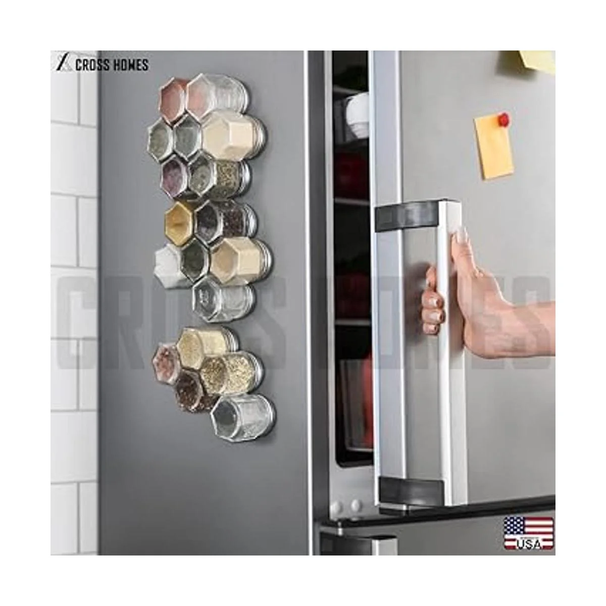 Imanes de alta resistencia con elegantes tarros hexagonales que ahorran tu valioso espacio en la cocina: nuestros tarros de especias incluyen un imán de neodimio ultra fuerte cerrado de forma segura debajo de cada tapa. Esto garantiza una fuerte adherencia a cualquier superficie de metal, incluyendo la puerta oscilante del refrigerador, el lado del refrigerador, el tablero magnético de especias contra salpicaduras y mucho más. La alta resistencia también hace que nuestros tarros sean la solución de almacenamiento perfecta para casas móviles, caravanas y barcos