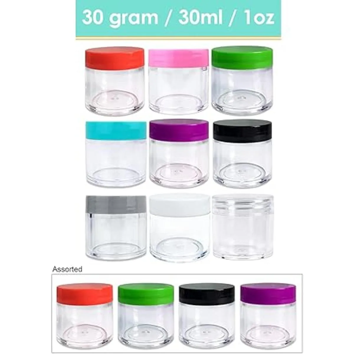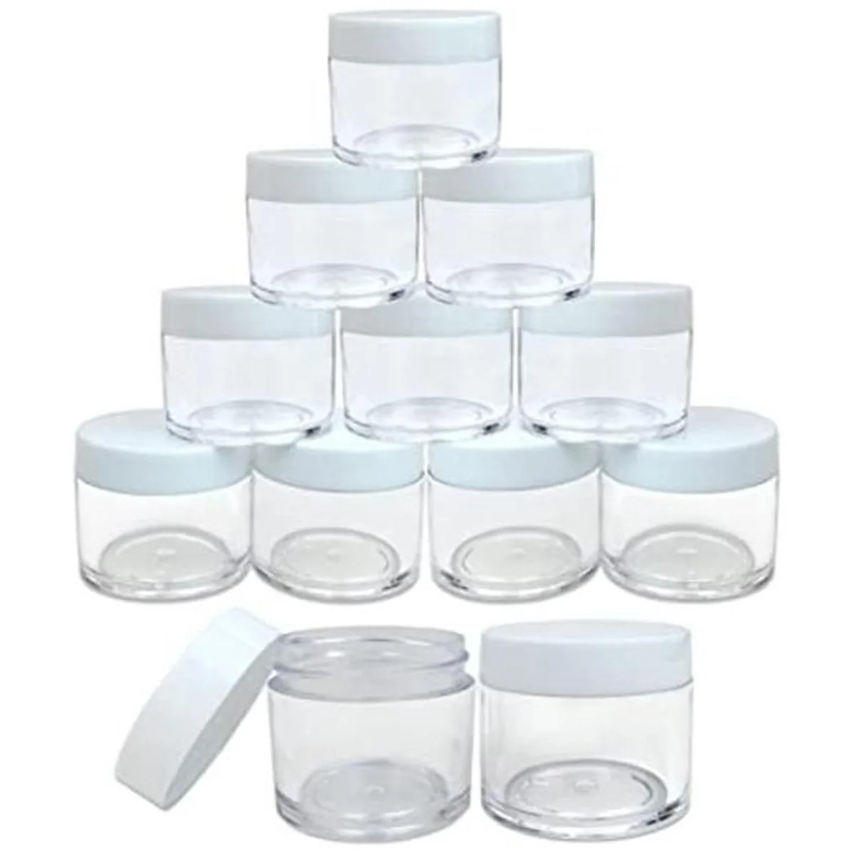 Tarros transparentes Beauticom con tapas blancas, 12 unidades, 1 onza