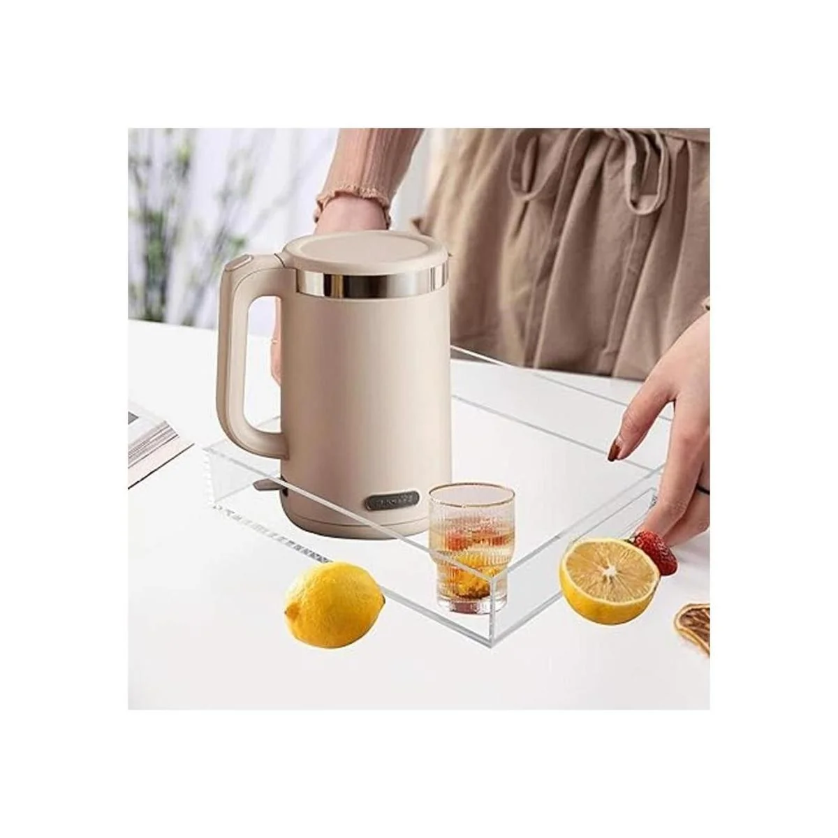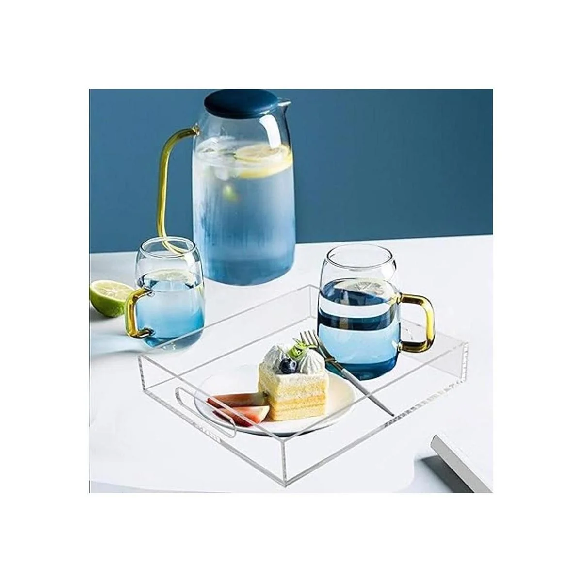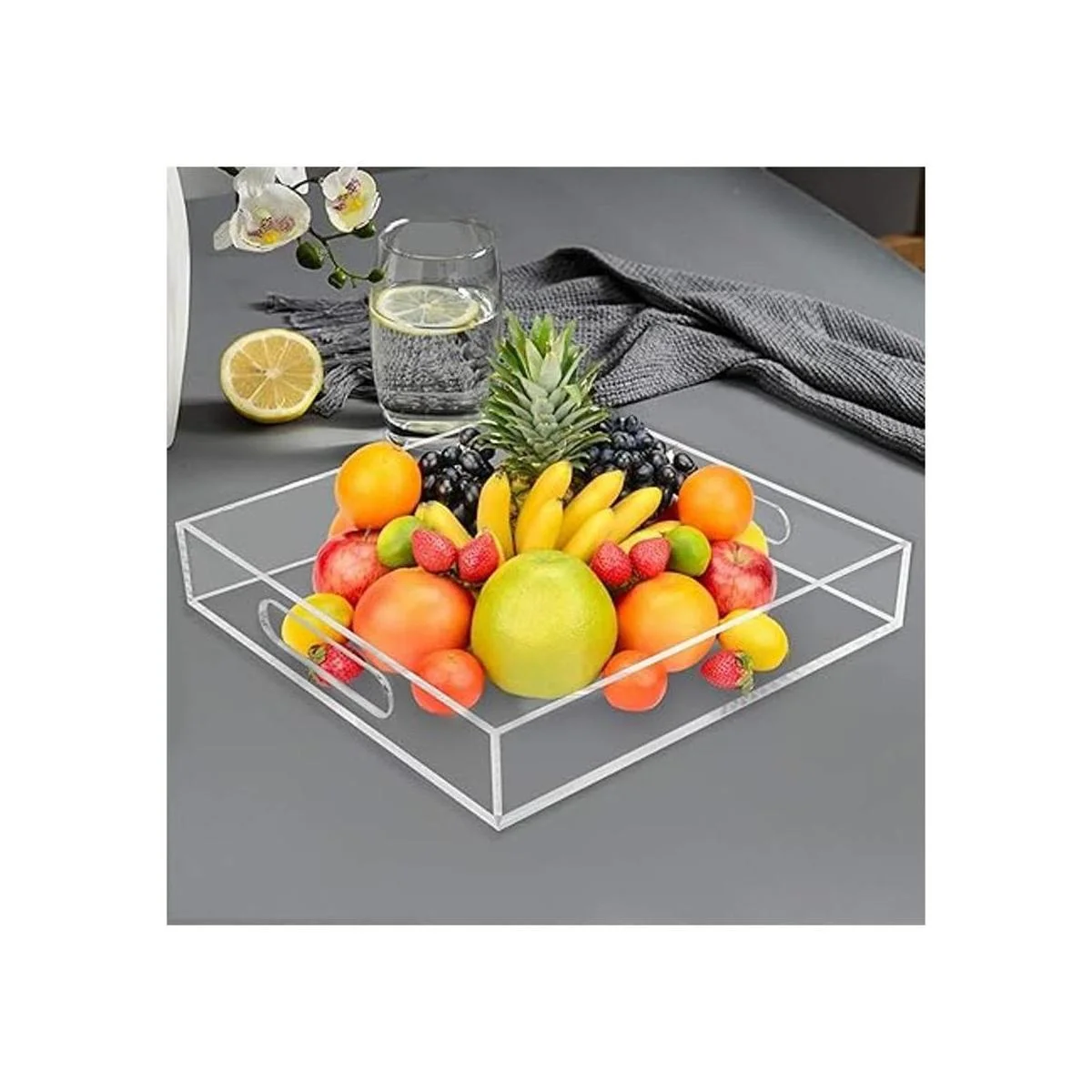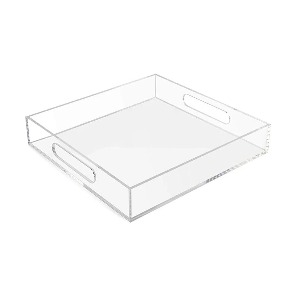 Tasybox Bandeja de acrílico para servir, bandejas decorativas transparentes con asas para cocina, comedor, mesa otomana, encimera de tocador de 12 x 12 pulgadas