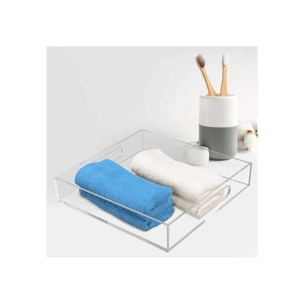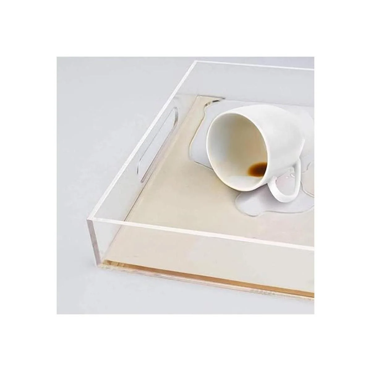 Bandeja de acrílico transparente: hecha de acrílico de 0.197 in de grosor, el diseño de borde liso para un uso más seguro, duradero y práctico; la forma cuadrada y el diseño transparente dan a este organizador de bandeja acrílica un aspecto elegante, moderno y llamativo.