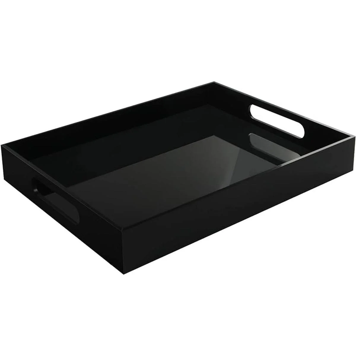 Tasybox Bandeja negra para servir, bandejas decorativas de acrílico con asas para cocina, comedor, mesa otomana, encimera de tocador de 16 x 12 pulgadas
