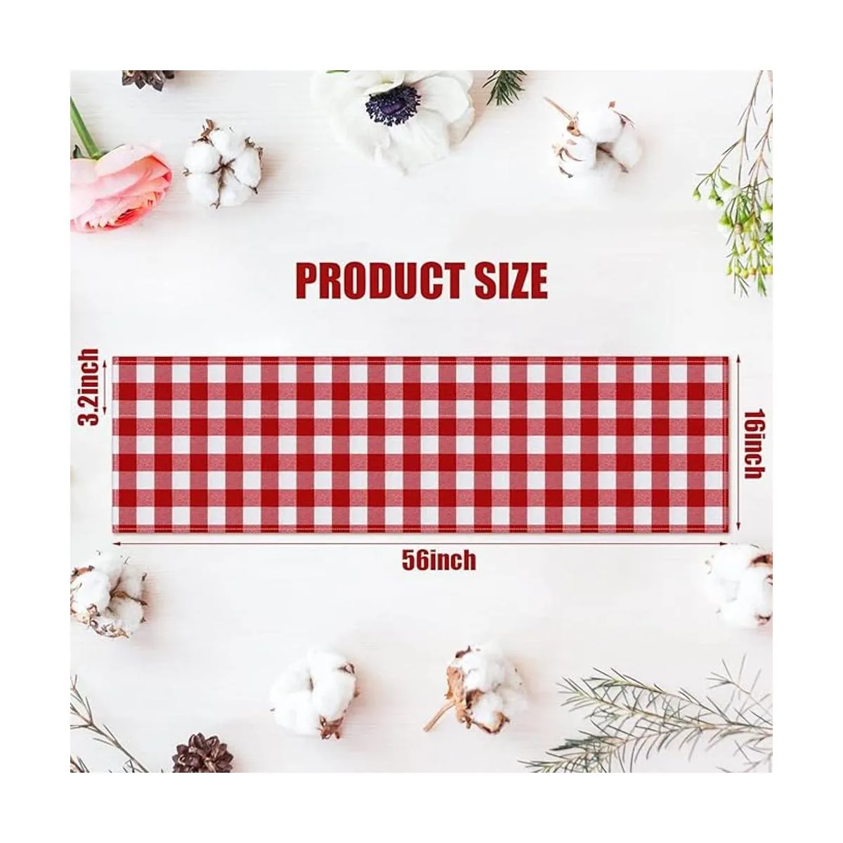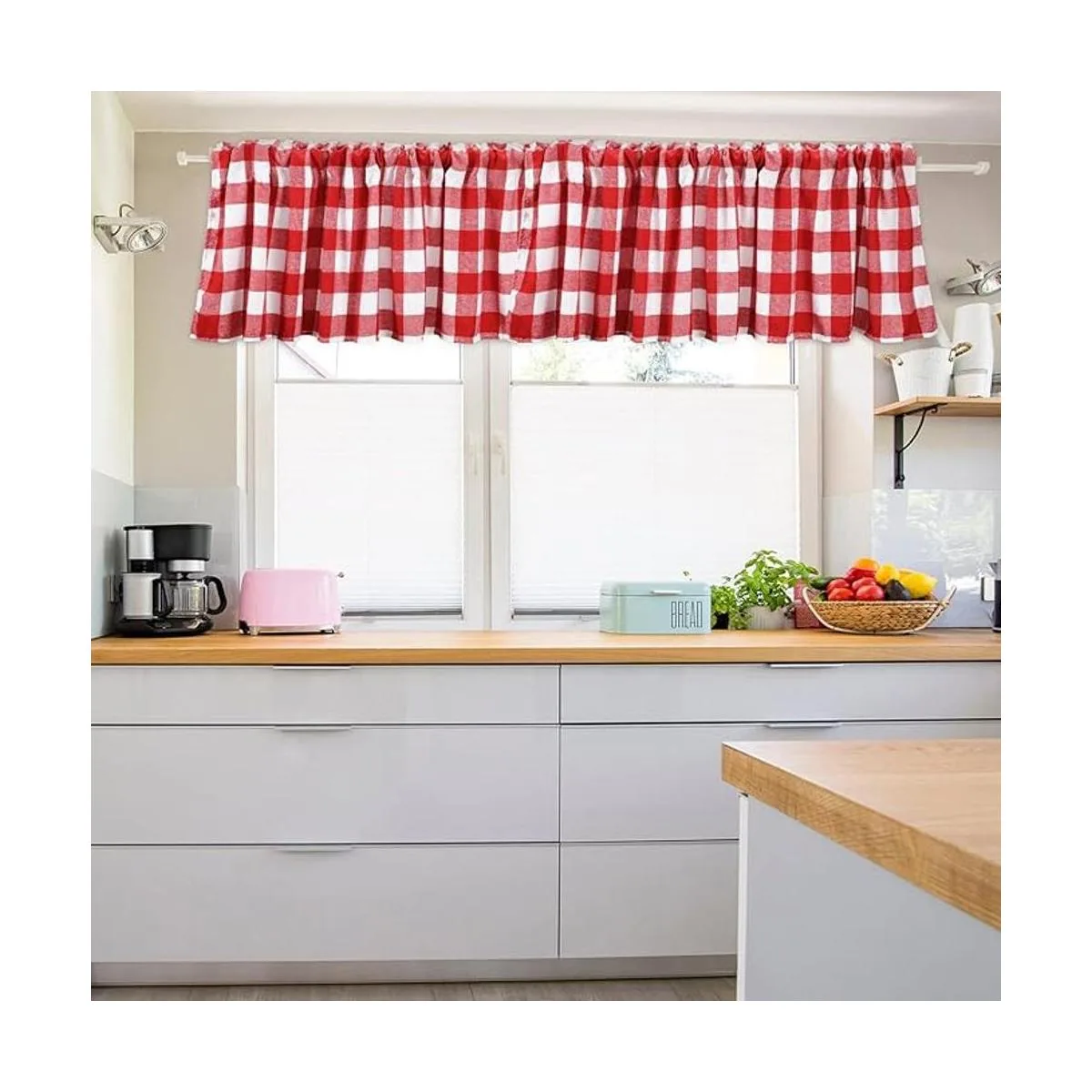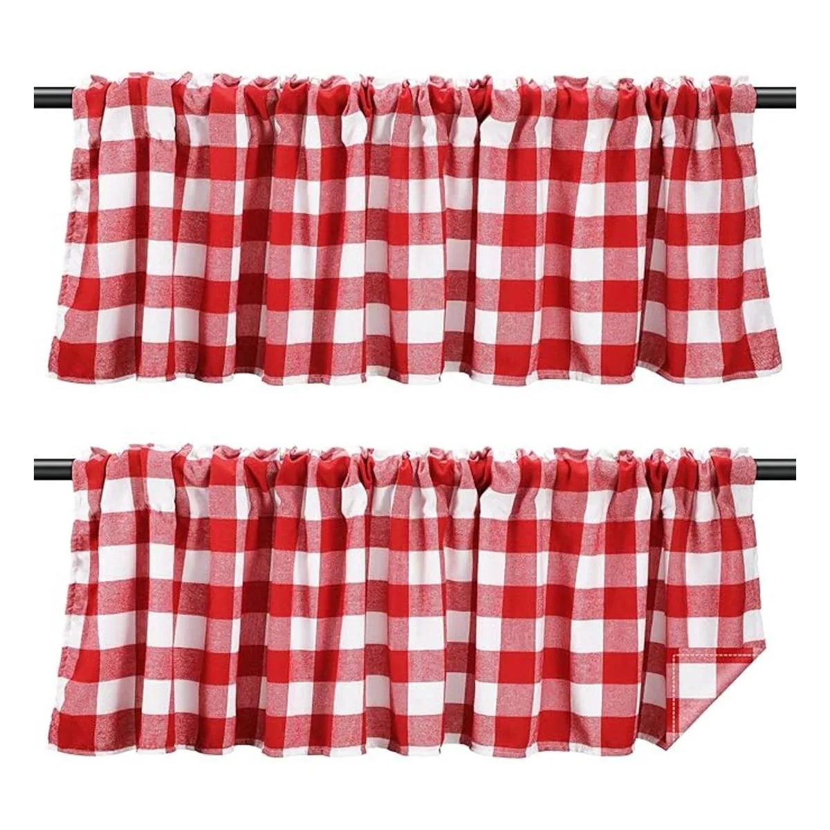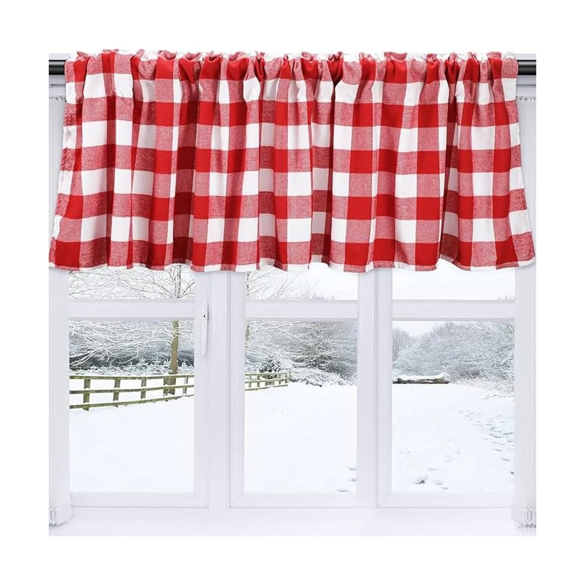Tatuo Cortinas a cuadros de búfalo de Navidad, cenefas de ventana con diseño de granja, decoración de ventana, cenefas con bolsillo para barra para cocina, baño, sala de estar, 16 x 56 pulgadas rojo y blanco, 2 piezas