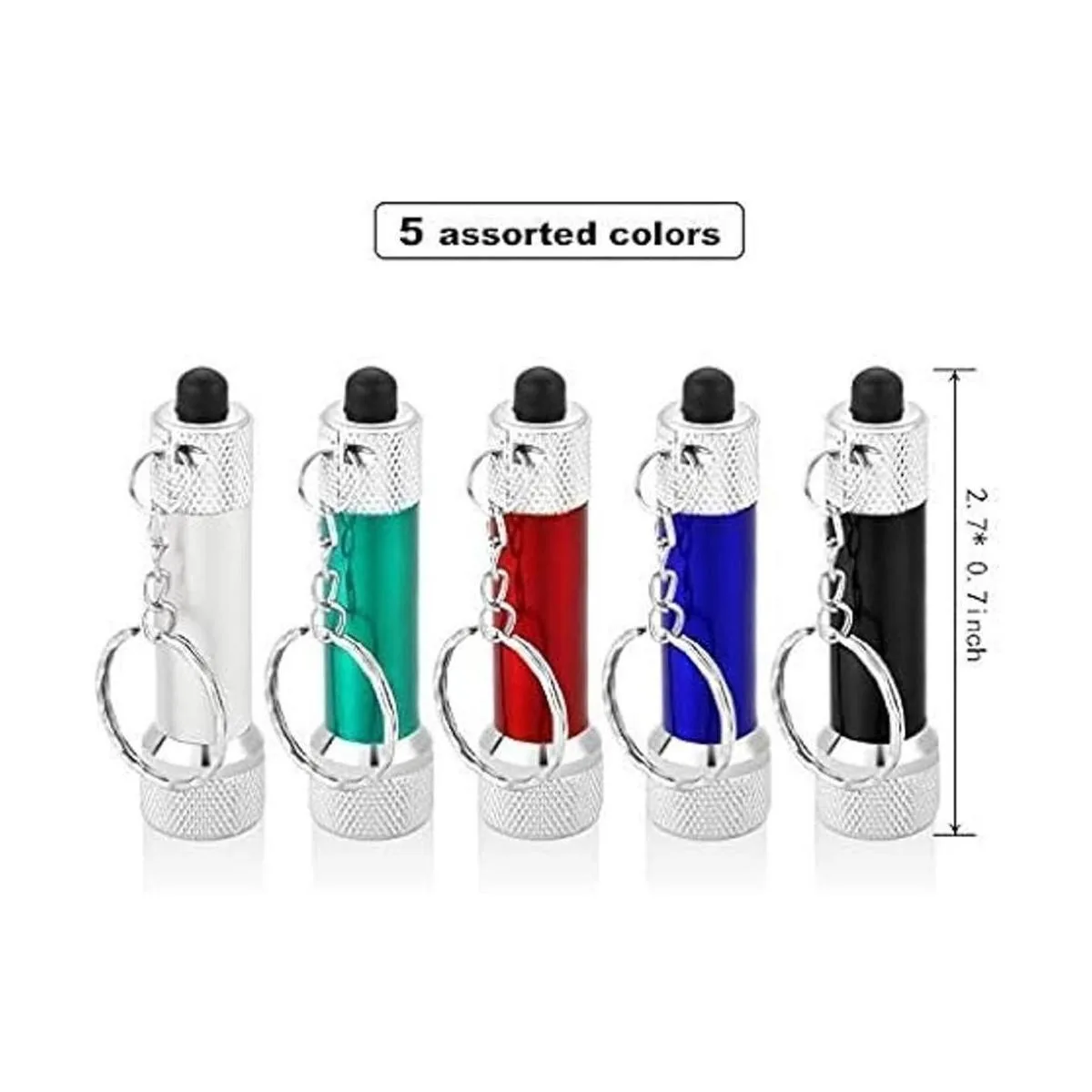 Diseño: mini linternas diseñadas con 5 bombillas LED que pueden ofrecer un haz adecuado, son muy útiles cuando caminas por la noche o por el pasillo oscuro, cada una tiene un tamaño portátil de 2.756 x 0.709 in con llavero de 2.0 in
