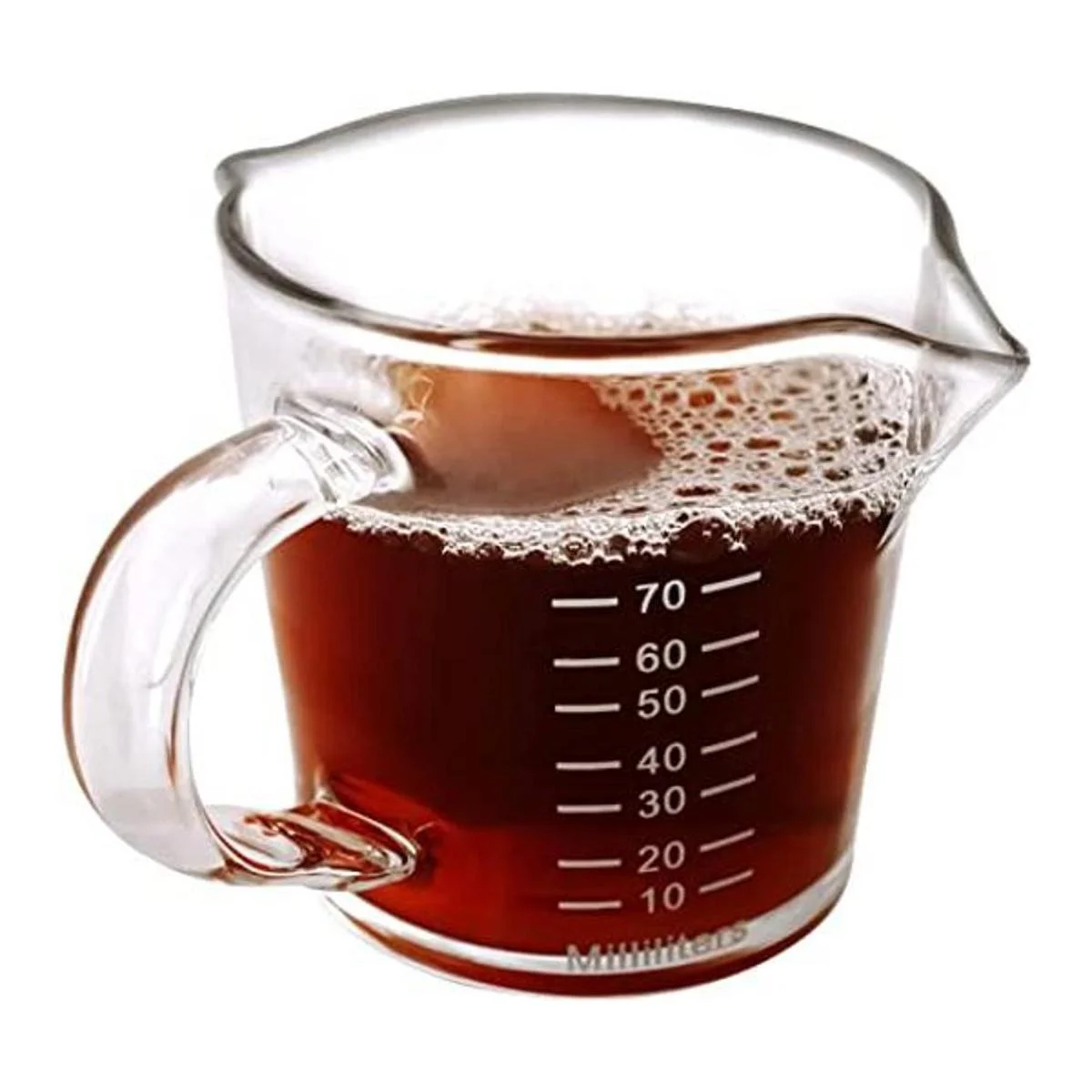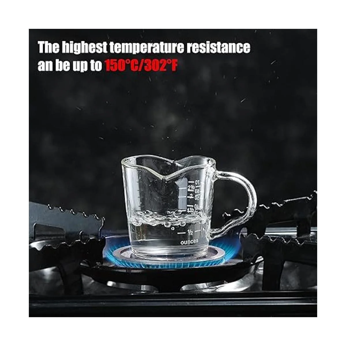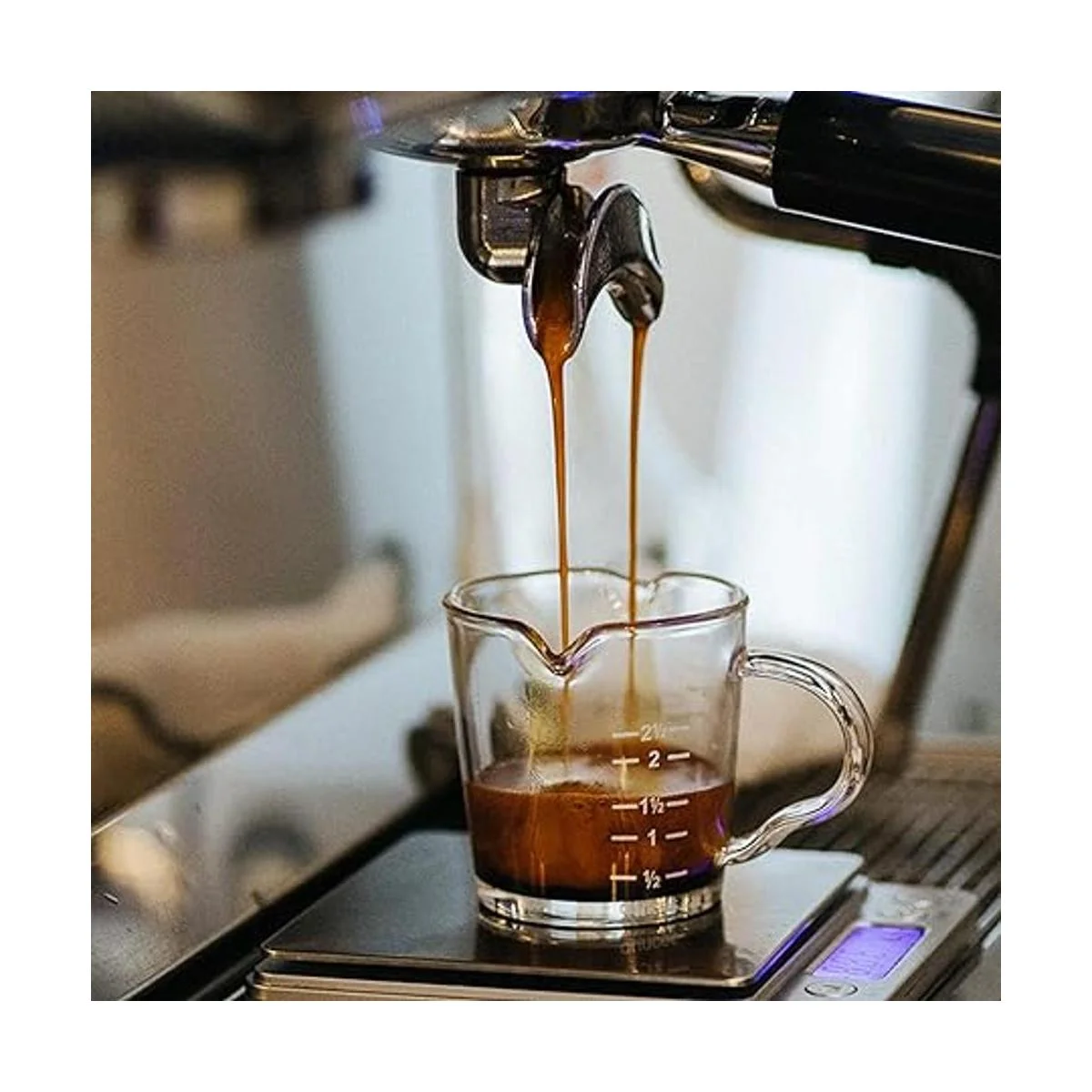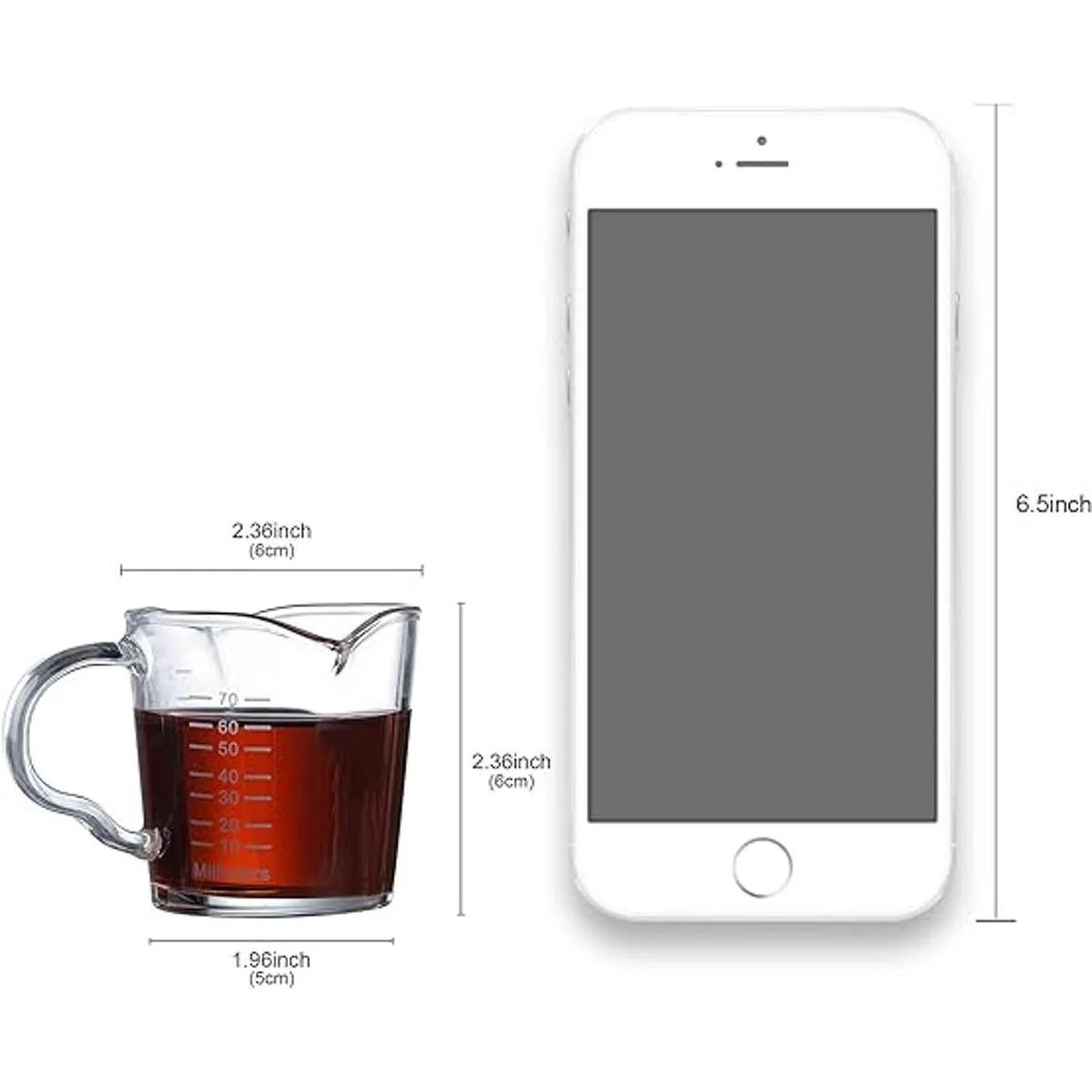 Taza medidora de espresso de 2.5 onzas de doble boquilla, vidrio transparente, resistente al calor, taza de leche con asa para leche, café expreso