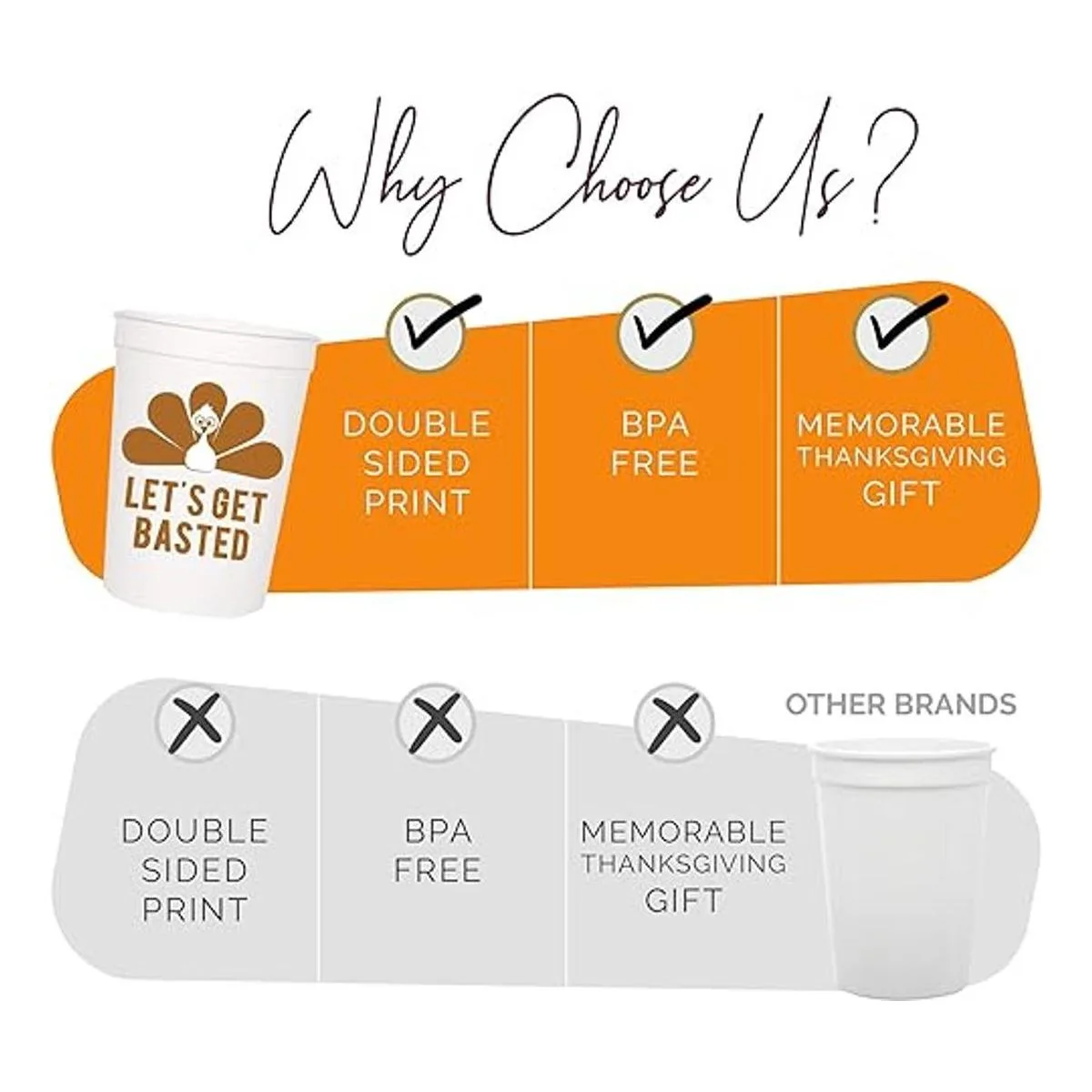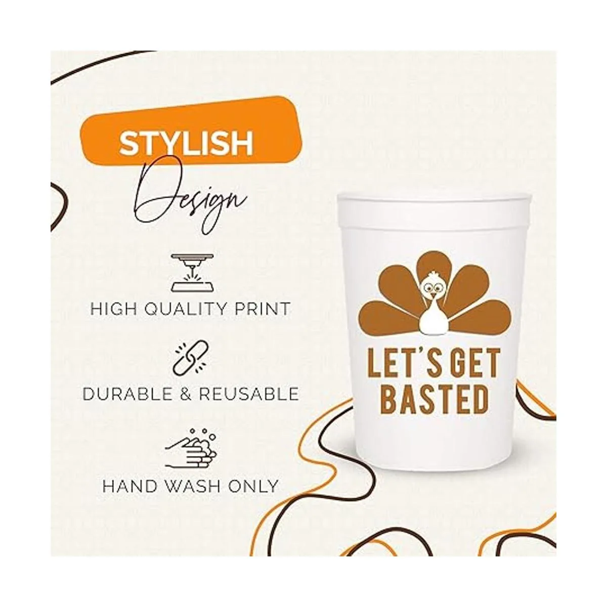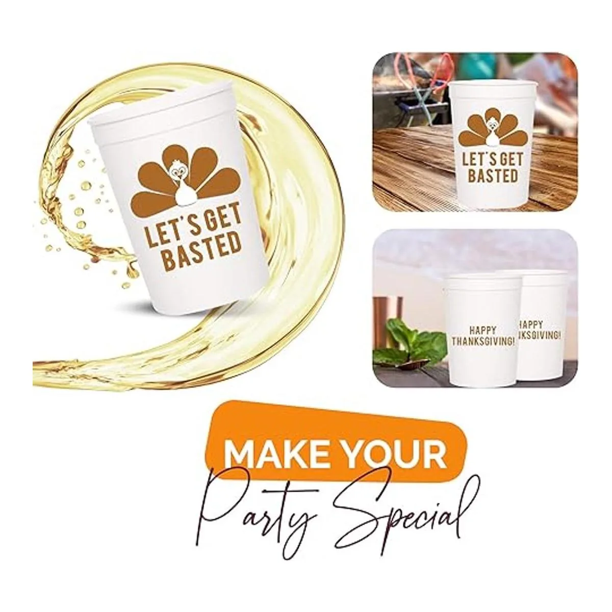 Tazas de fiesta de Acción de Gracias, Lets Get Basted, juego de 12 tazas de estadio de 16 onzas, color blanco y naranja quemado, perfectas para cena de Acción de Gracias, fiesta de Acción de Gracias, fiesta de amigos, suministros de Acción de Gracias