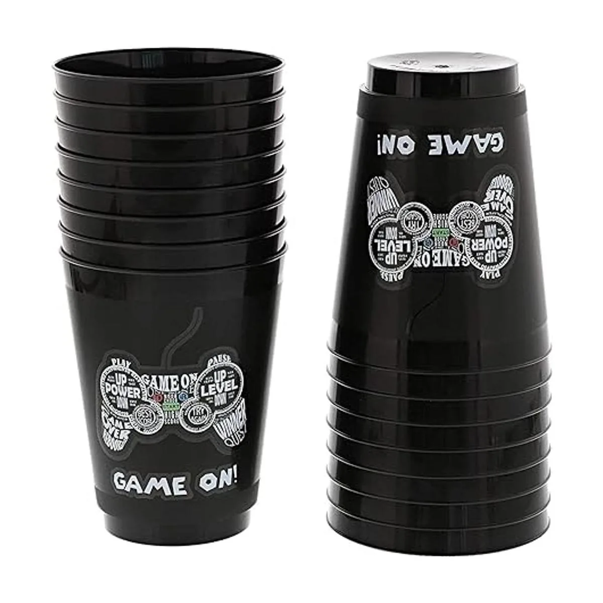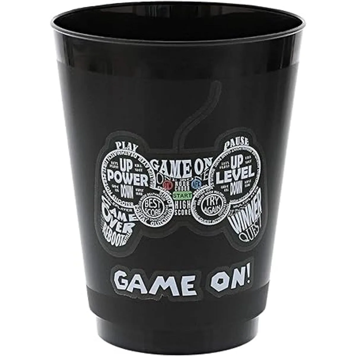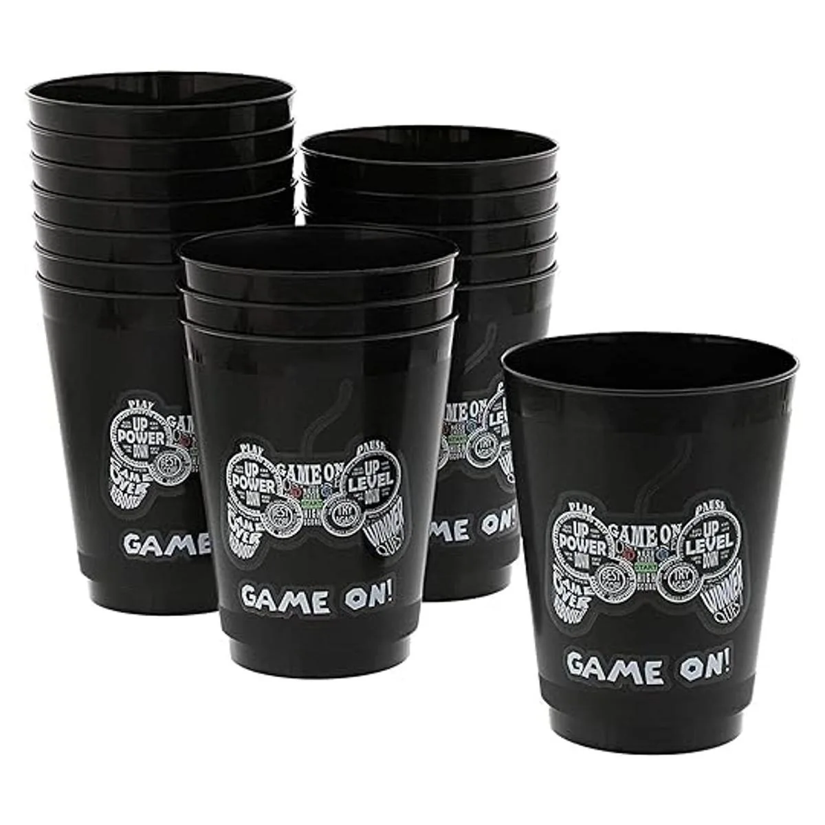 Tazas de fiesta de videojuegos para cumpleaños de niños 16 onzas, negro, 16 unidades