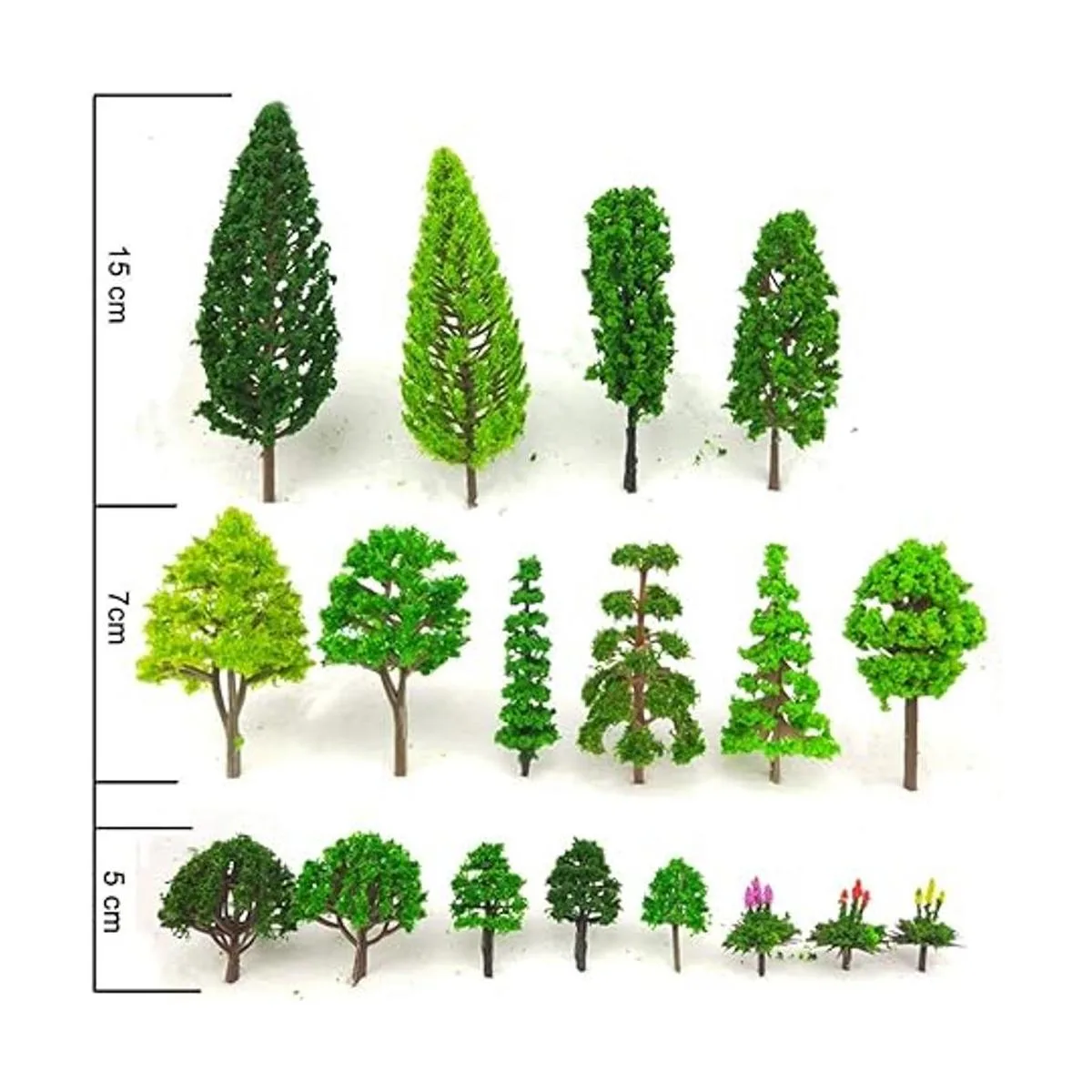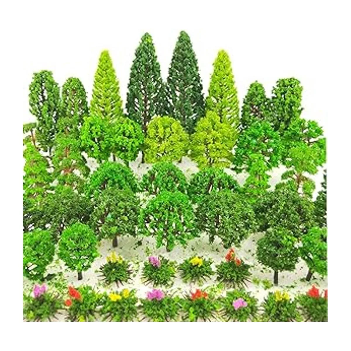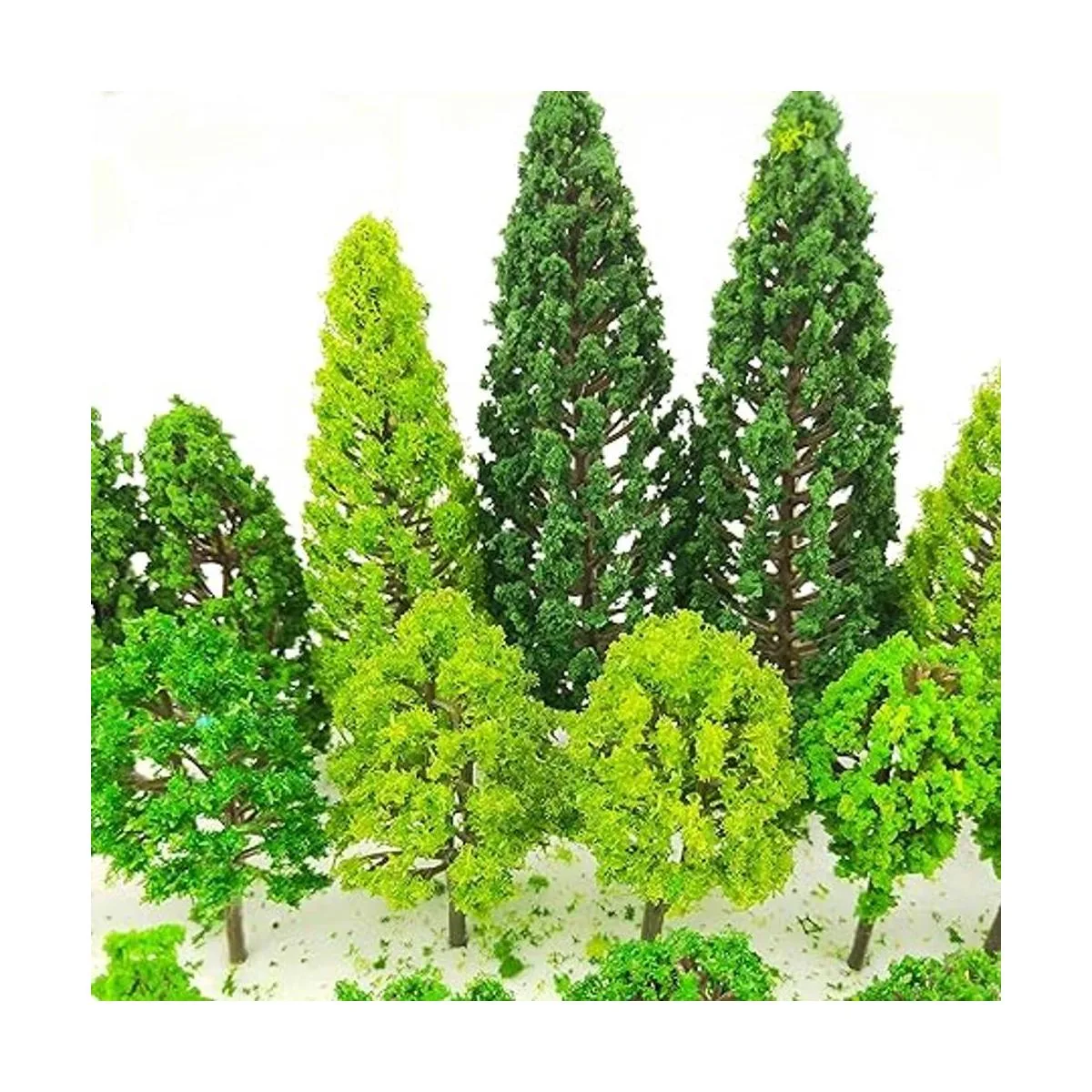 Cantidad: viene con 60 piezas de tamaños mixtos de árboles modelo en verde natural, suficientes cantidades de árboles artificiales para accesorios de paisaje de bricolaje.