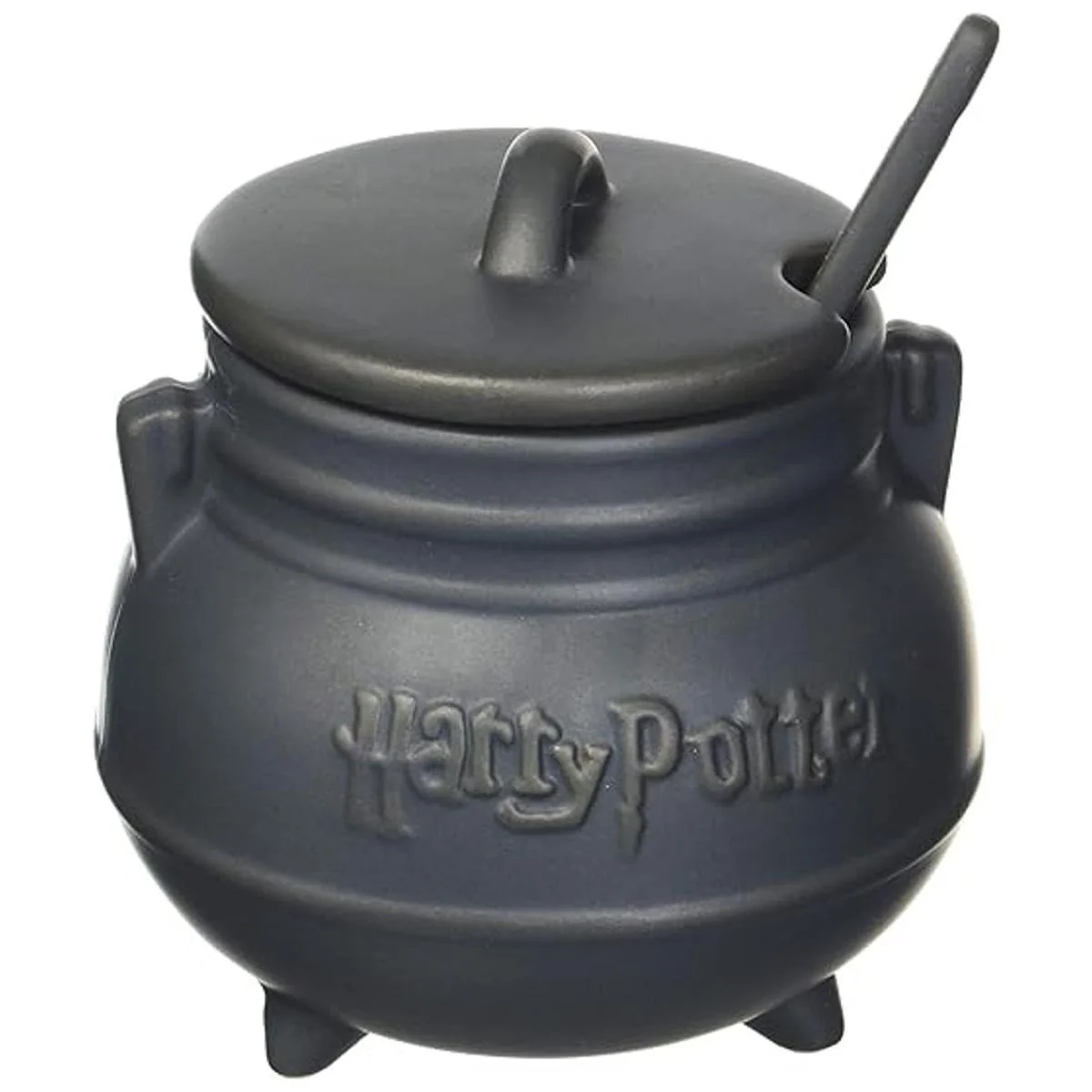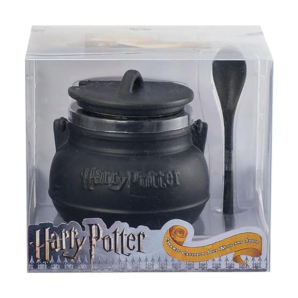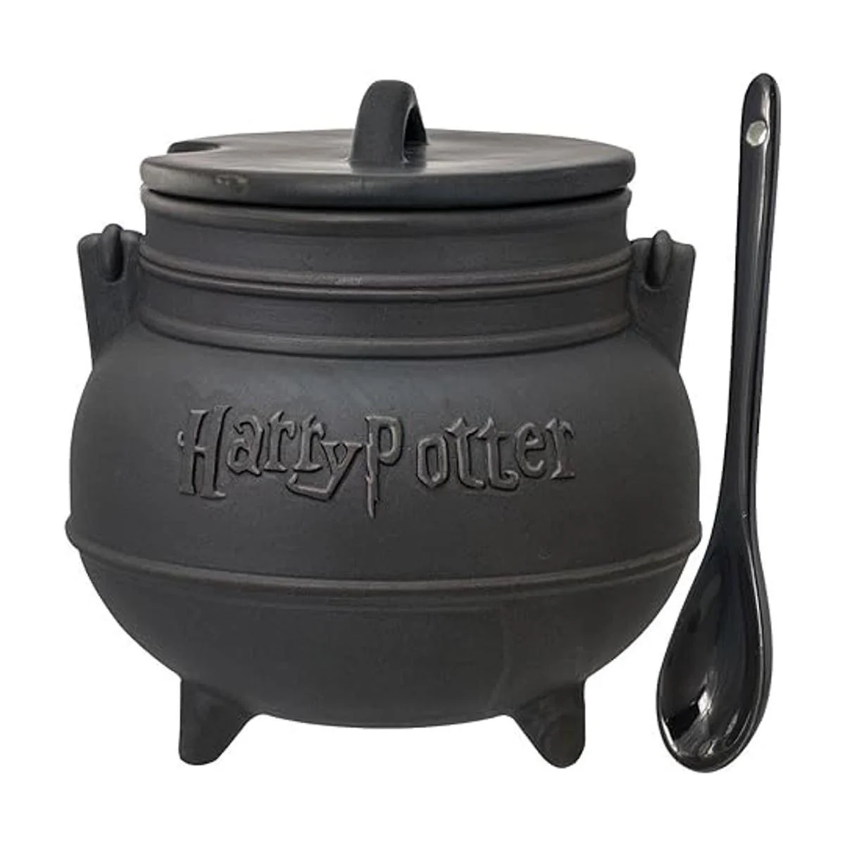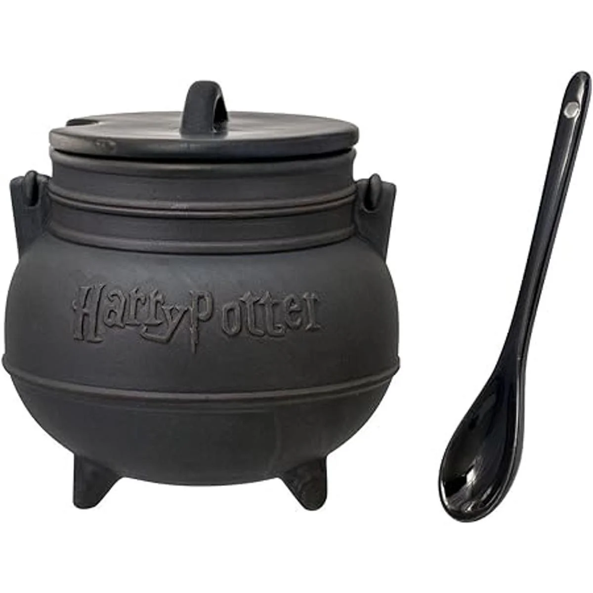 Tazón de cerámica para sopa, con forma de caldero negro de Harry Potter, con cuchara.