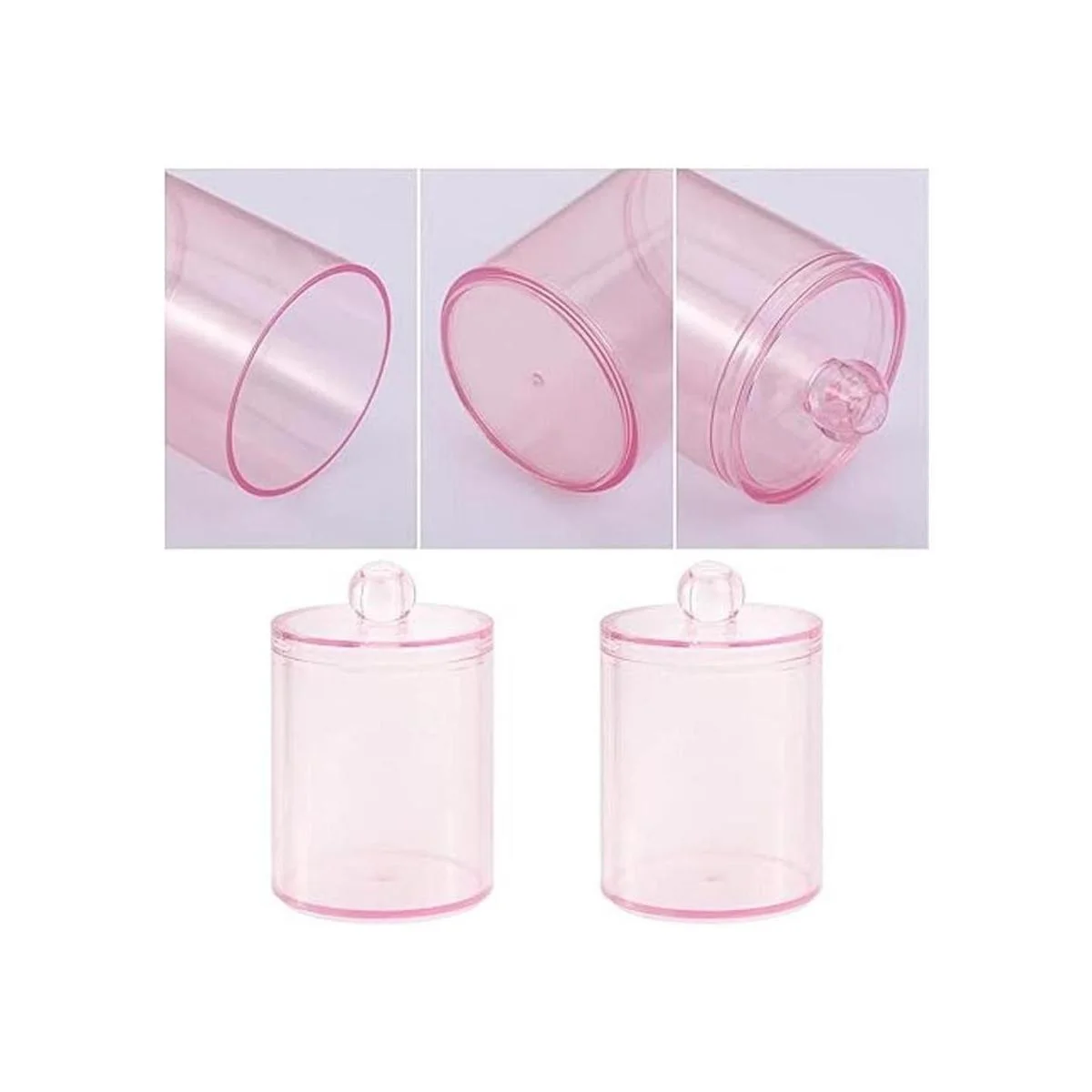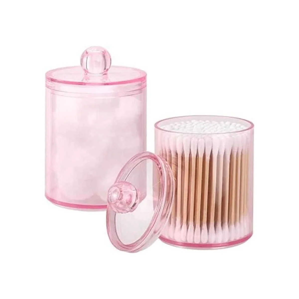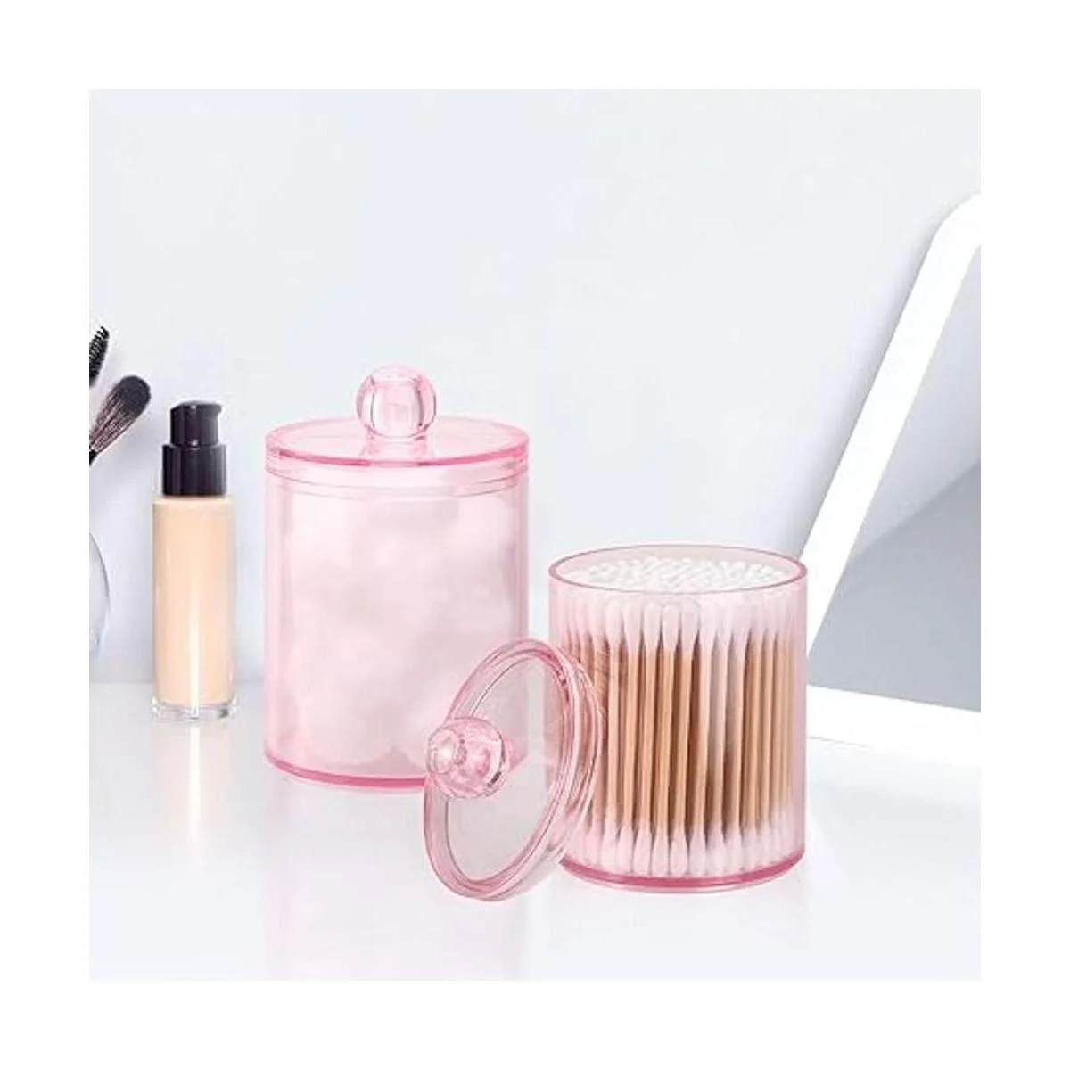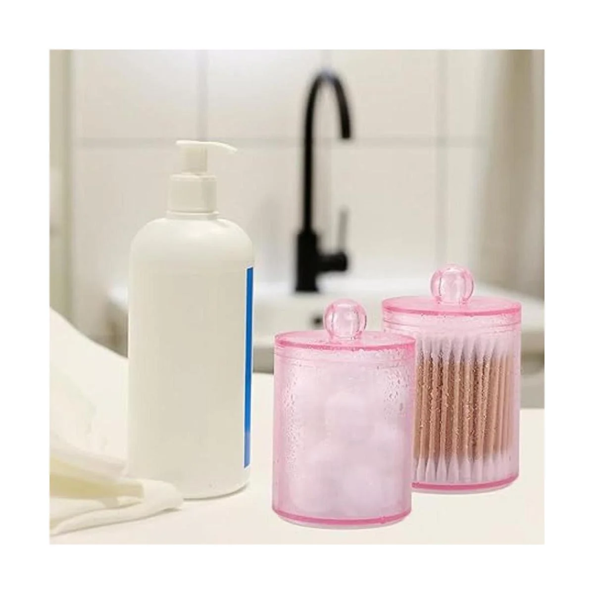 Tbestmax Paquete de 2 tarros de baño con soporte Qtip para dispenzor de almacenamiento de almohadilla de hisopo de bolas de algodón, color rosa, 10 onzas