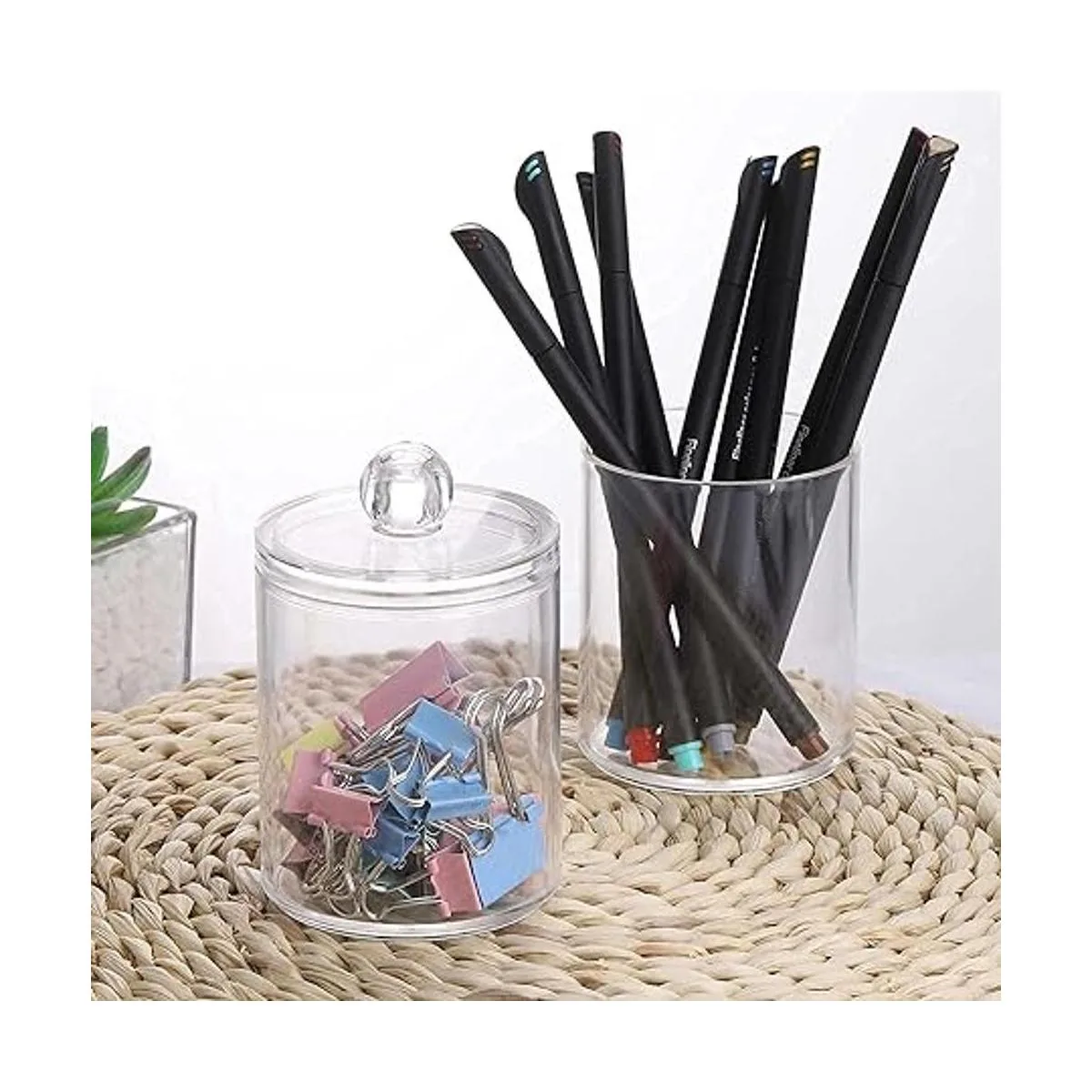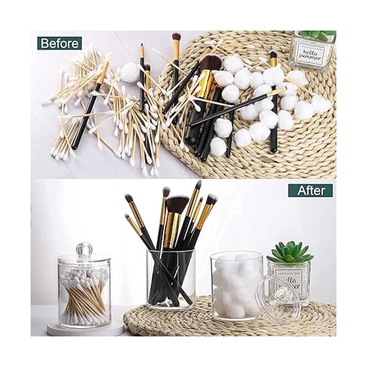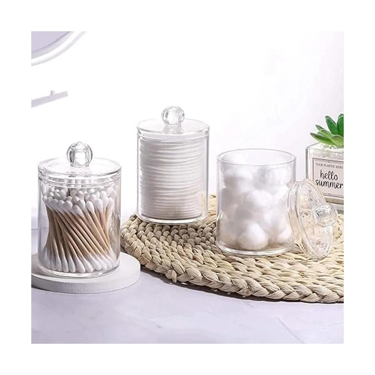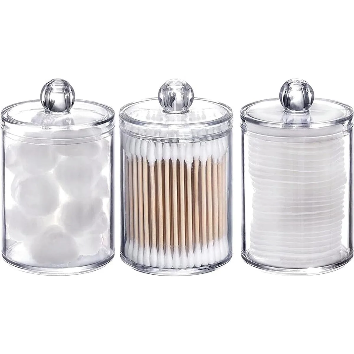 Tbestmax Paquete de 3 soportes de bolas de algodón de plástico, organizador de baño de 10 onzas, dispensador de recipientes transparentes de tarro de boticario Qtip