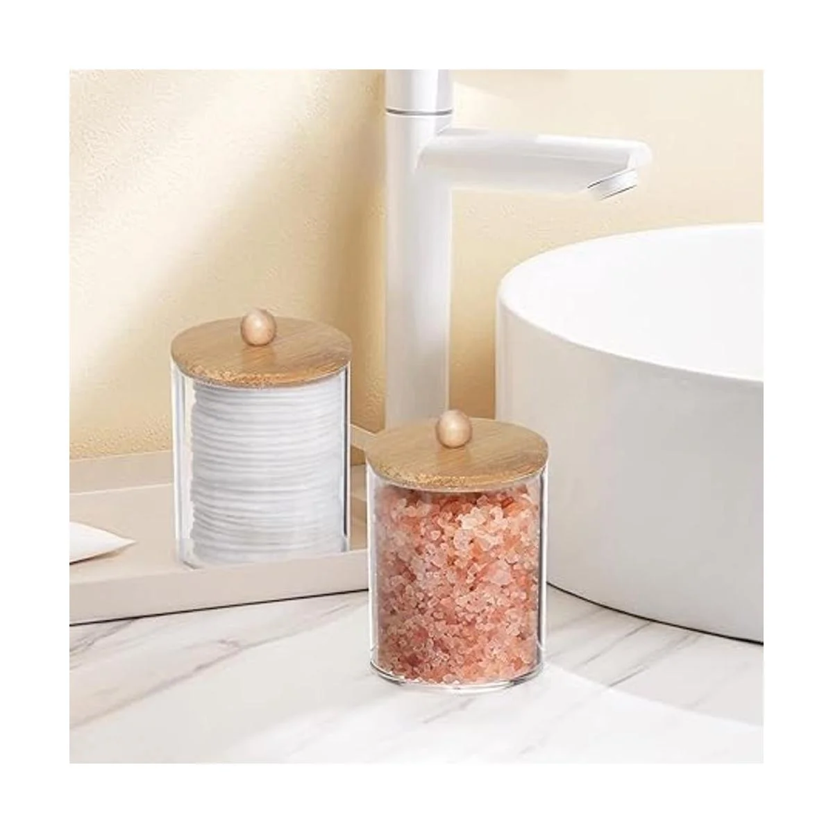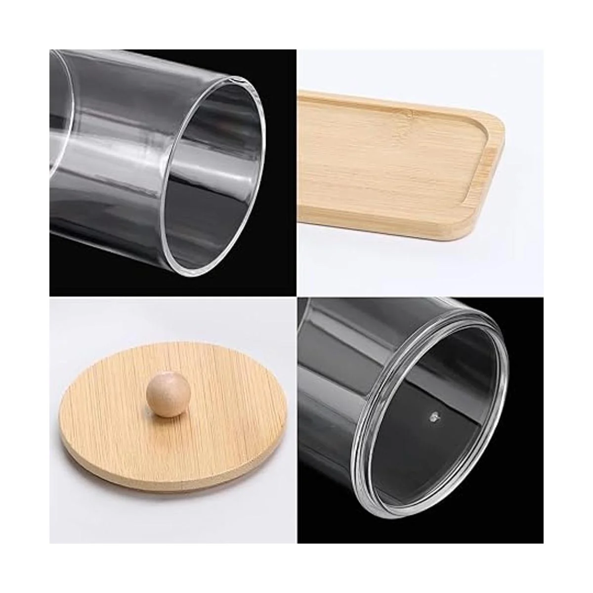 Tbestmax Soporte para hisopo/boticario de algodón de 10 onzas, dispensador transparente de recipientes de baño para almacenamiento, paquete de 3 tapas de madera
