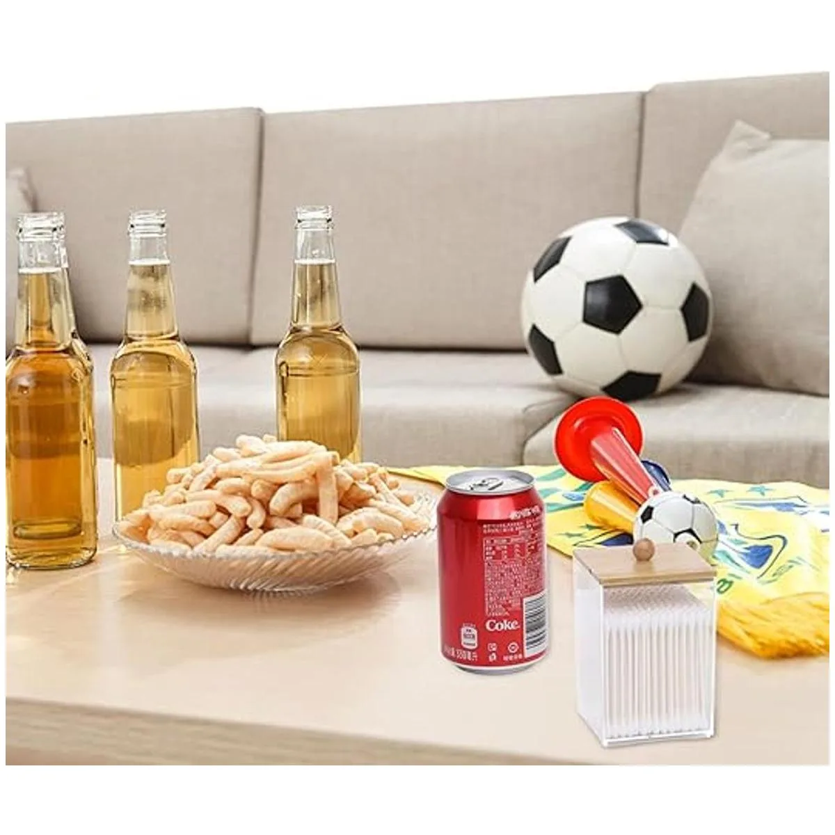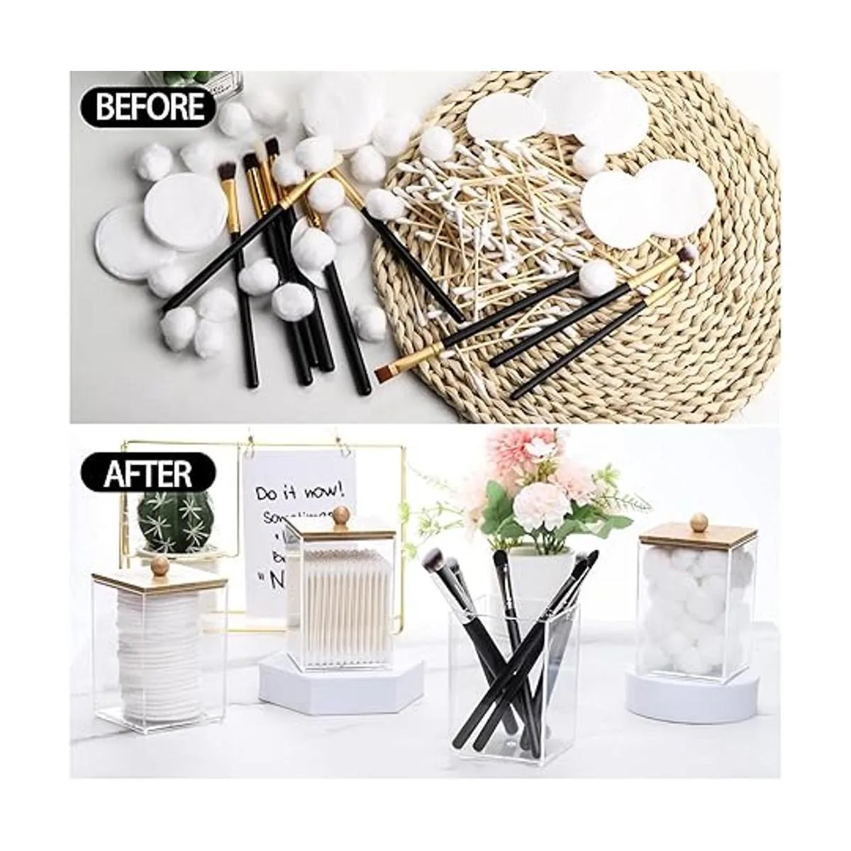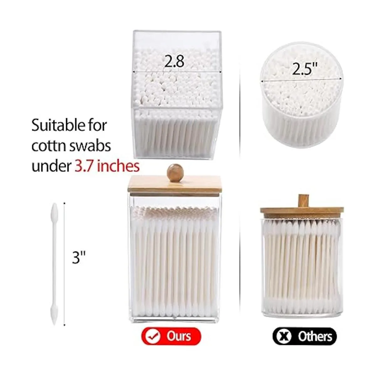 Tbestmax Soporte para hisopoboticario de algodón de 12 onzas, dispensador transparente de recipientes de baño para almacenamiento, paquete de 4 tapas de madera