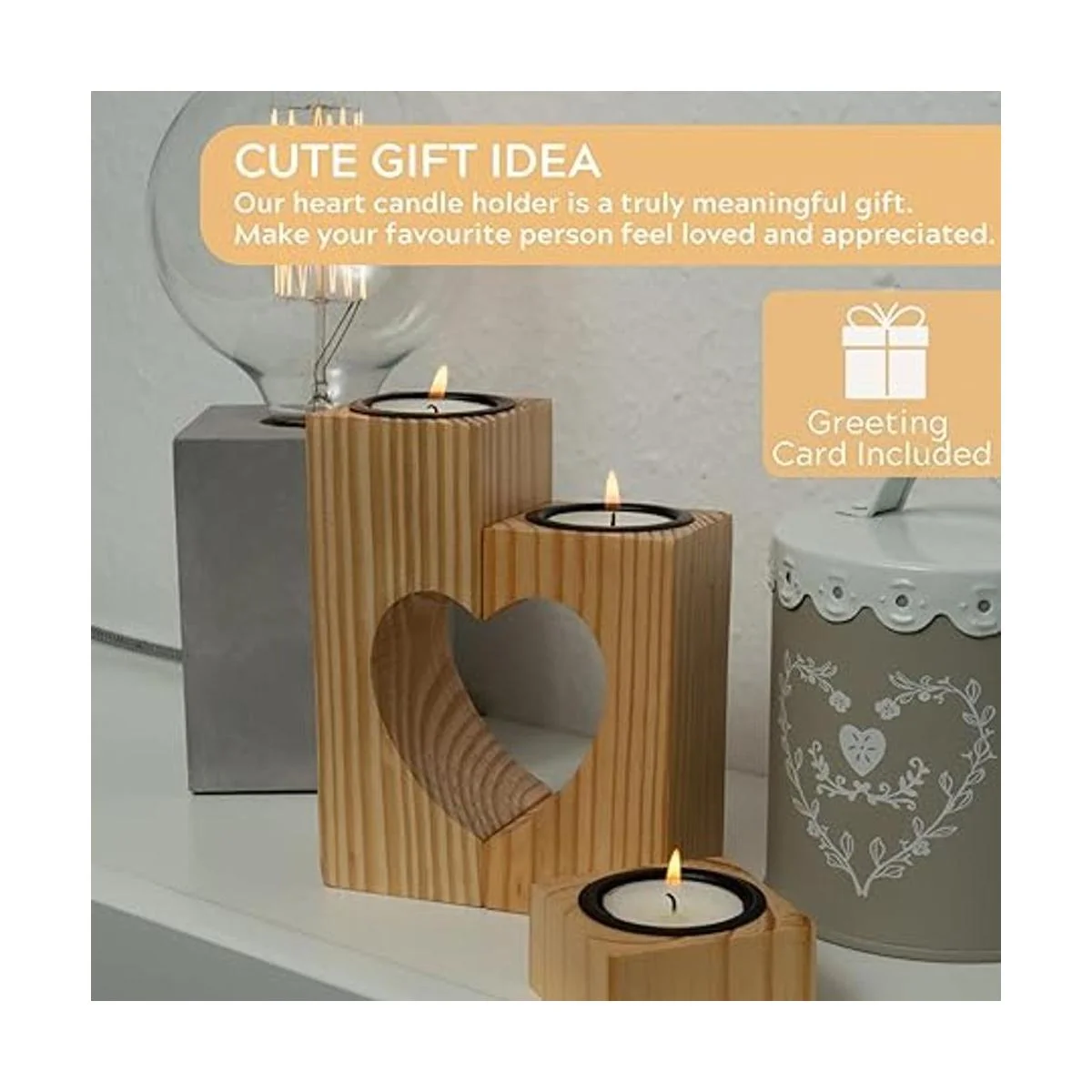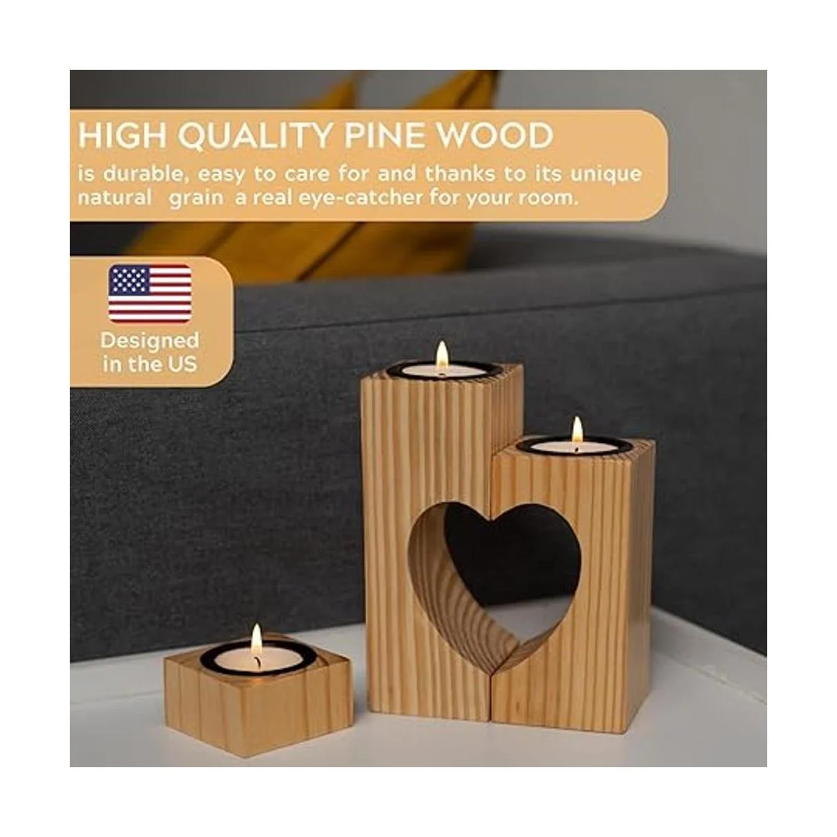 TBFM Juego de 3 portavelas decorativos hechos a mano, regalos únicos para novia, esposa, ella, decoración romántica, luces de té, madera de pino de 5.9 pulgadas de alto