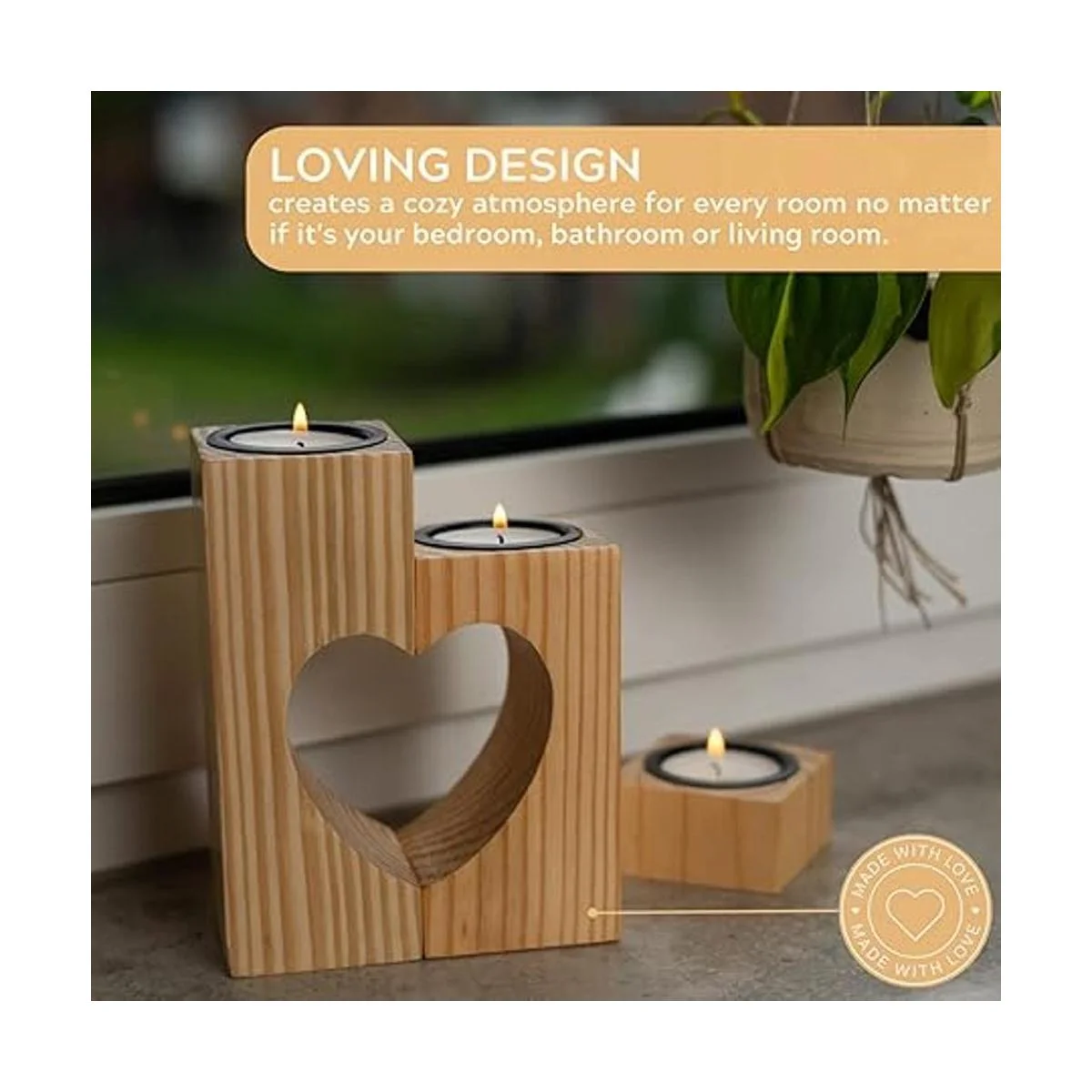 nico y hecho a mano: este portavelas de corazón está hecho a mano con mucho amor de madera de pino de alta calidad. Junto con su grano natural, cada uno de nuestros bonitos portavelas de té es realmente único