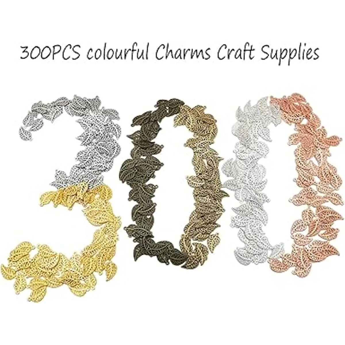 TBFYS 300 cuentas de hojas para hacer joyas, al por mayor de aleación de hojas de árbol, suministros de manualidades para manualidades, pulseras, collares, aretes, llaveros colores mezclados, Zinc, No es una piedra preciosa