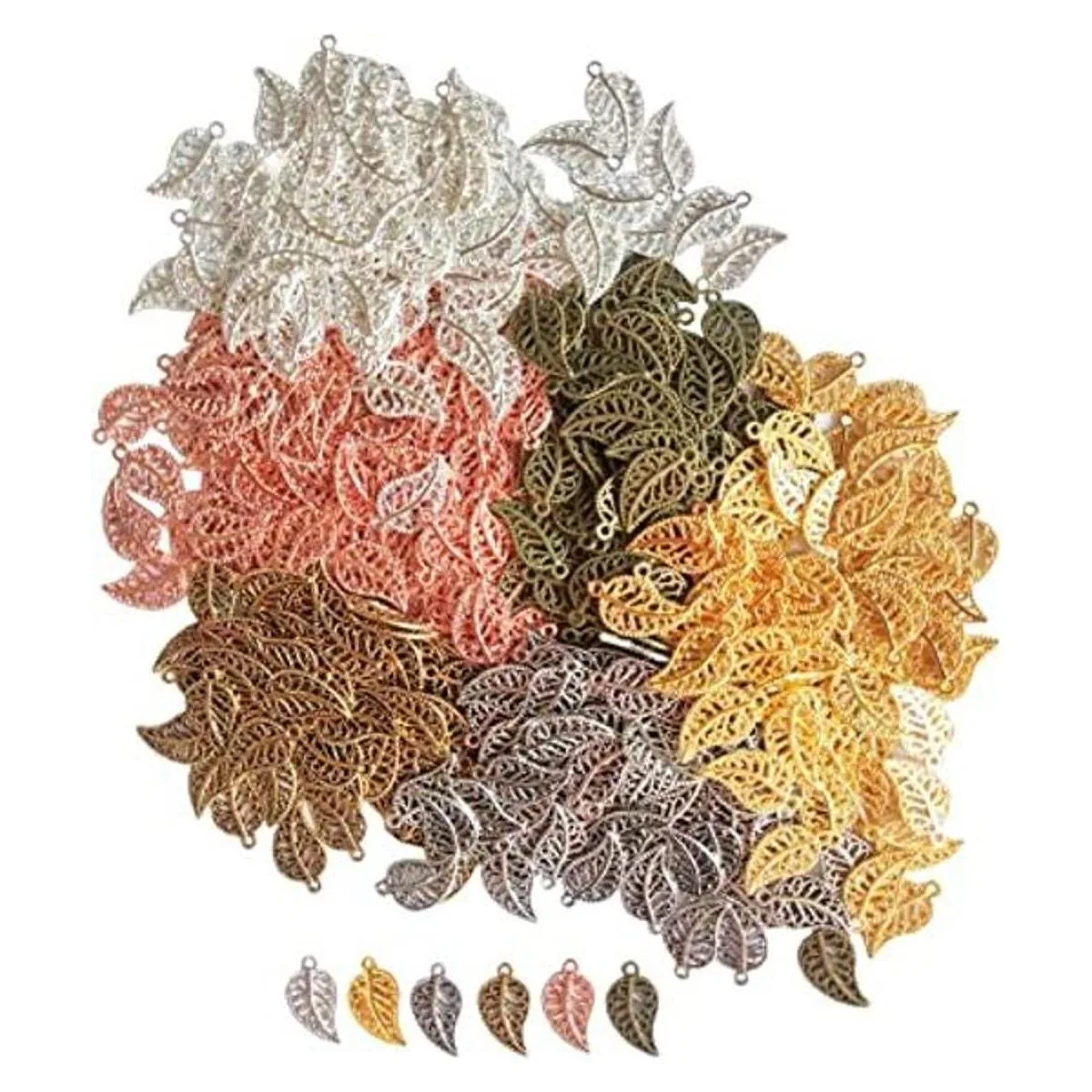 Perfecto para proyectos de manualidades: un práctico accesorio de joyería hecho a mano, pequeños dijes de plantas de follaje recortados para hacer joyas, aretes, collares, pulseras, llaveros, cadenas de cartera, tobilleras, tocados de maquillaje, accesorios de decoración de atrapasueños, etc. Proporciona una buena opción para diseñadores de manualidades.