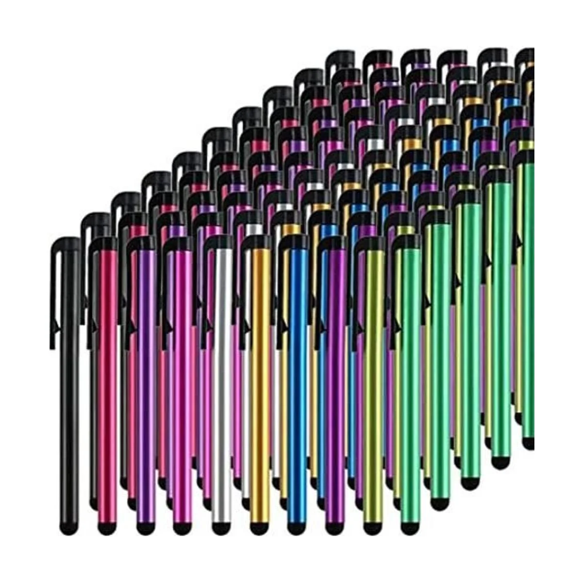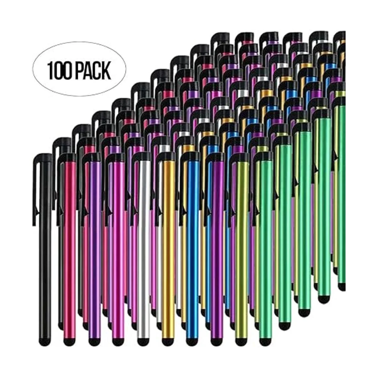 TCD Paquete de 100 lápices capacitivos de metal largo colorido universal funciona con todos los dispositivos de pantalla táctil, varios colores para iPad Galaxy Chrome Book Tablets