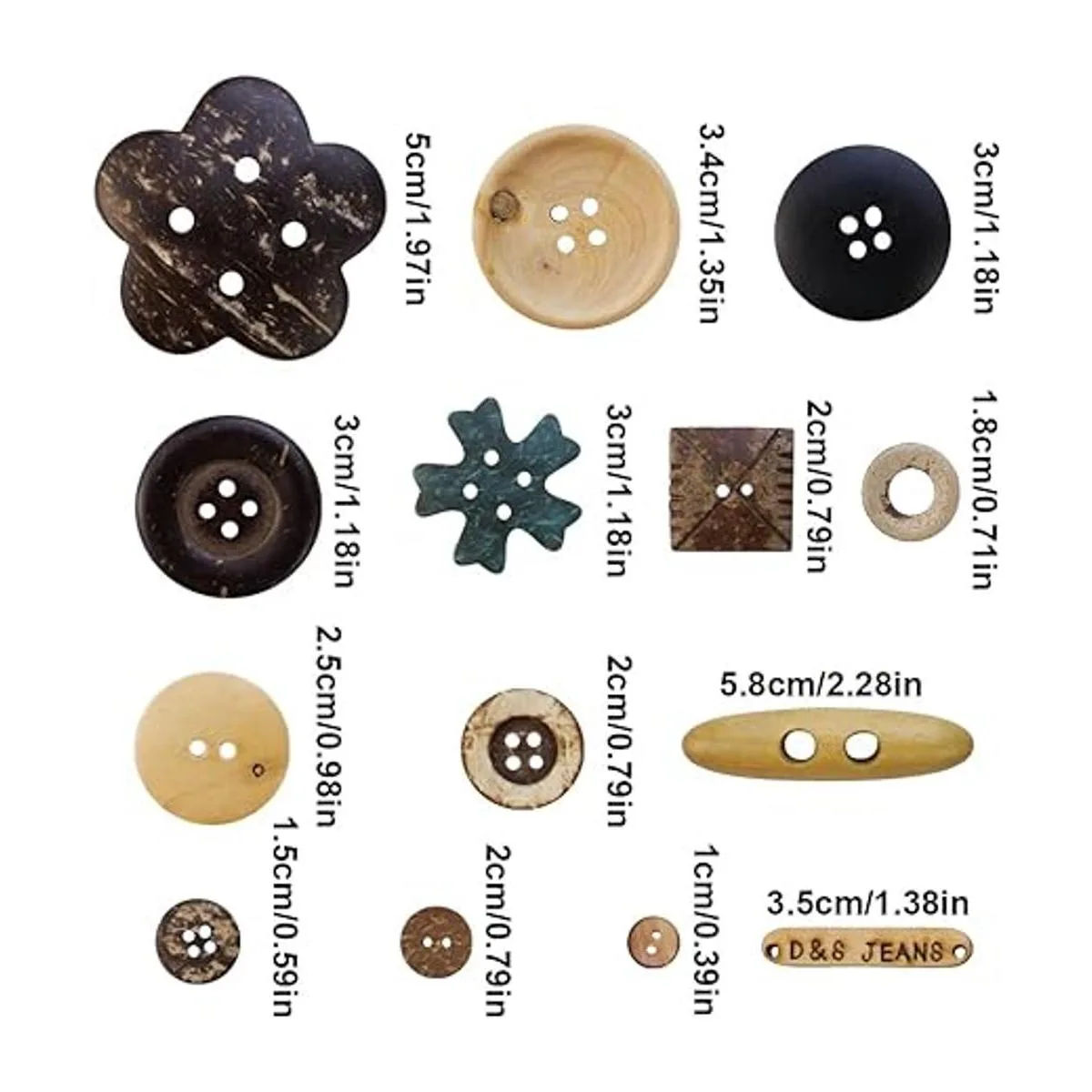 Material: estos botones están hechos de madera y cáscara de coco de alta calidad, no se rompen fácilmente, sin bordes afilados ni rebabas, suaves y duraderos, se pueden fijar a la ropa como hermosos botones decorativos.