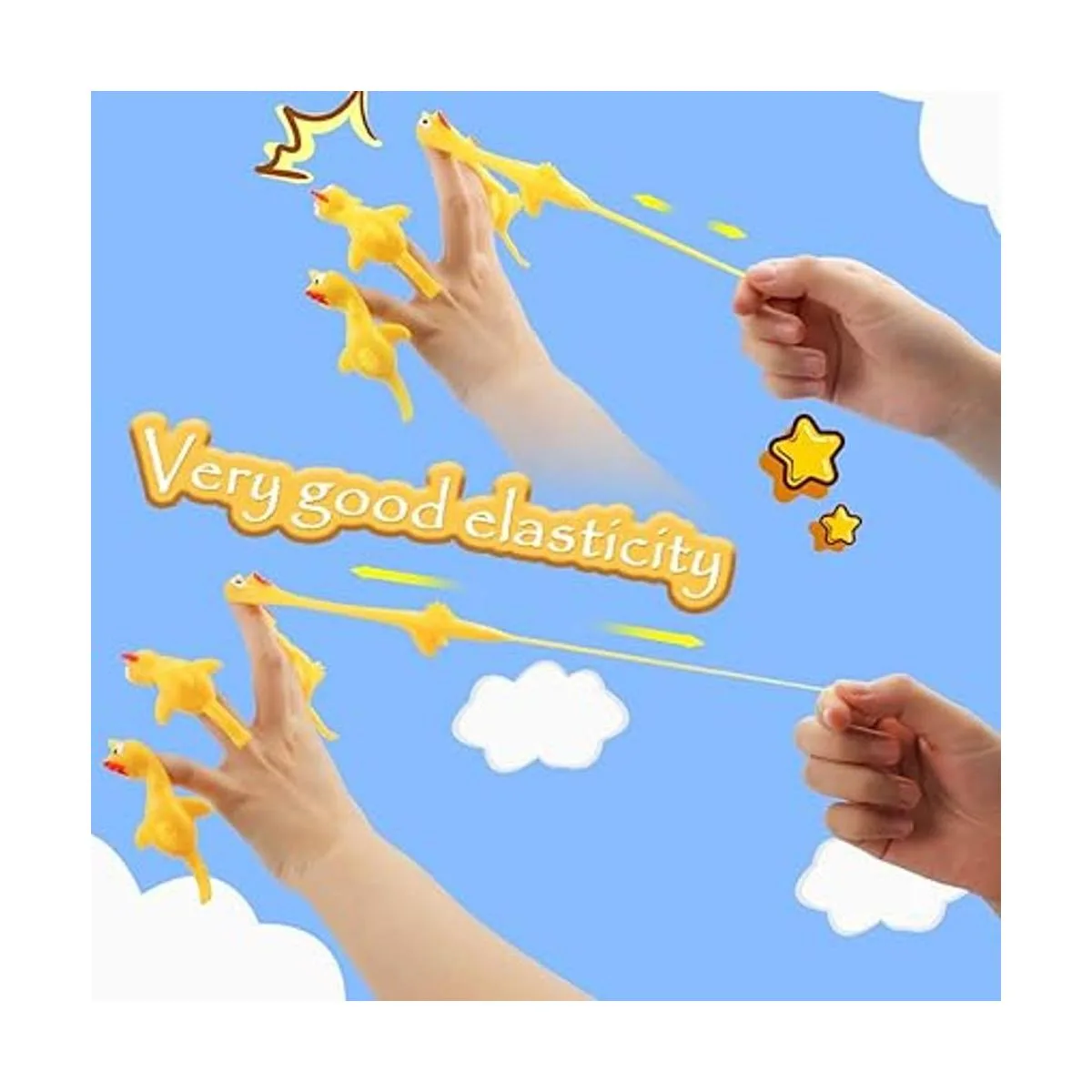 Embalaje del producto: 10 unidades de pollos de tirita, hecho de material TPR, el juguete de pollos de goma no es tóxico y flexible