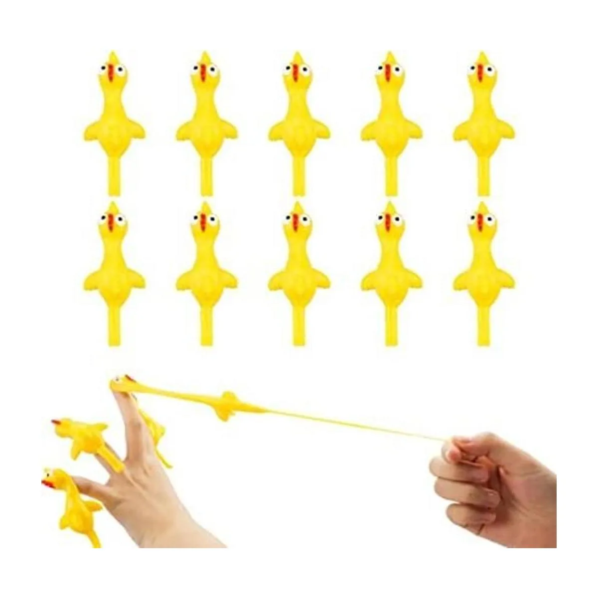TCOTBE Paquete de 10 pollos voladores con tirachuelas, pollos de goma, pollos voladores, divertido Navidad, juego elástico para niños y niñas, recuerdo de fiesta, actividad escolar, regalo divertido