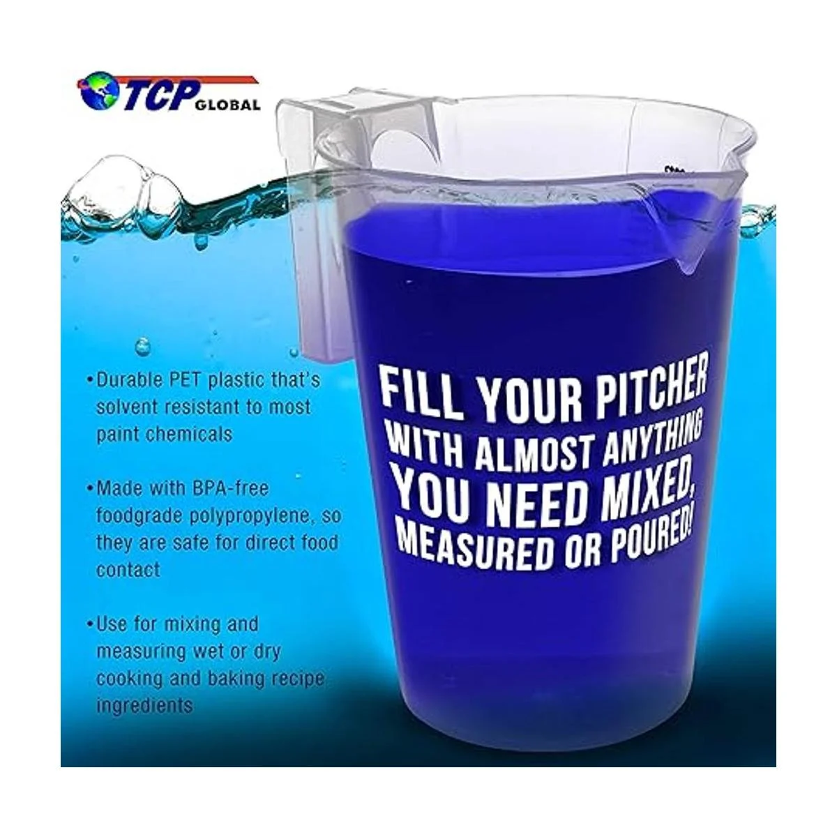 Estas jarras de plástico grueso son excelentes para mezclar, medir y verter pintura, resina, epoxi, manchas, materiales de arte y manualidades, además de mucho más. El plástico duradero PET tiene una alta resistencia química a una amplia variedad de productos químicos.