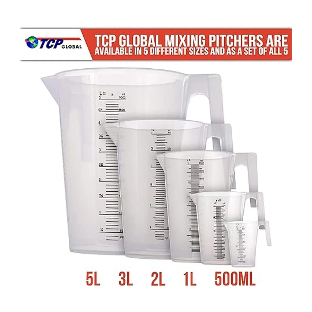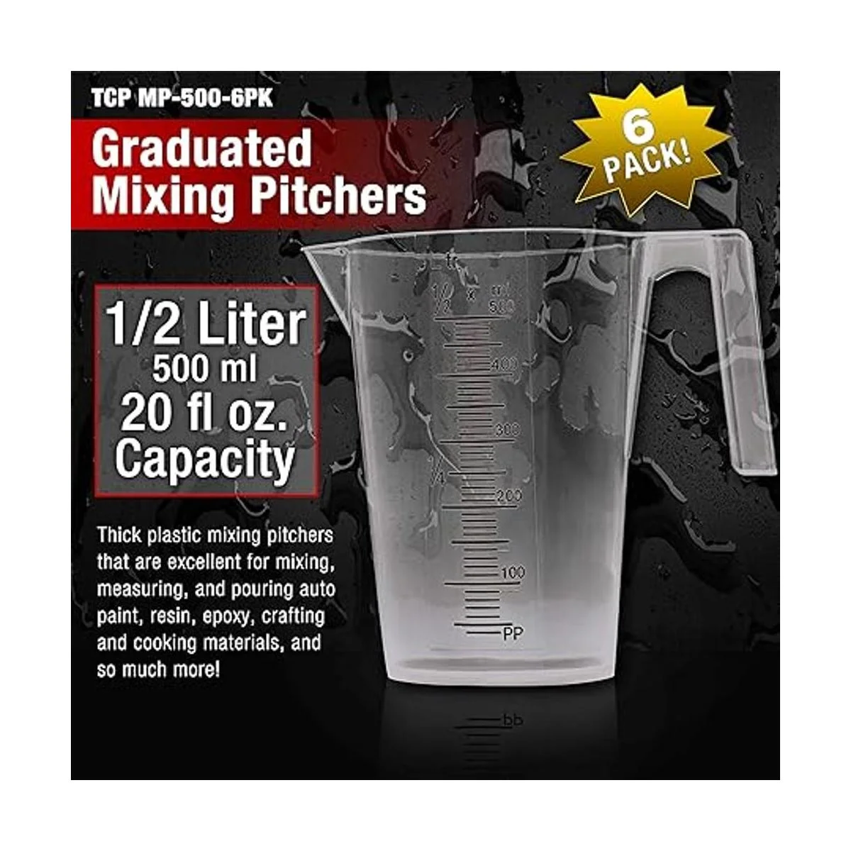 TCP Global Jarra de medición y mezcla de plástico graduada de 12 litro 16.9 fl oz paquete de 6 Capacidad para más de 1 pinta 16 onzas Vasos para vertir, medir y mezclar pintura, resina, epoxi, ingredientes para hornear cocina