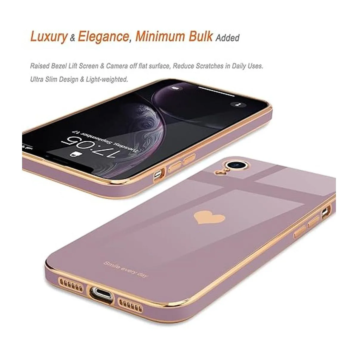 Teageo Funda compatible con iPhone Xr para niñas y mujeres, diseño de corazón de amor, cubierta trasera suave con protección de cámara elevada, de silicona, a prueba de golpes, para iPhone Xr, lavanda