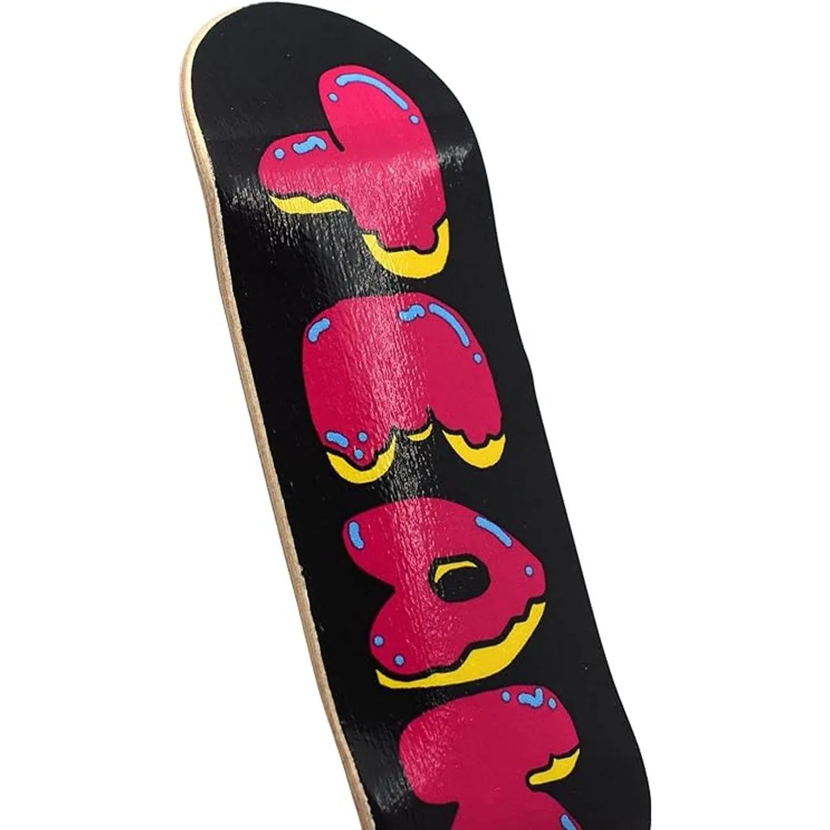 Tabla gráfica de transferencia de calor de alta calidad: cubierta de diapasón de arce de calidad premium con gráfico de transferencia de calor Donut Teak en la base. Auténtica calidad de monopatín para realismo y diseño duradero