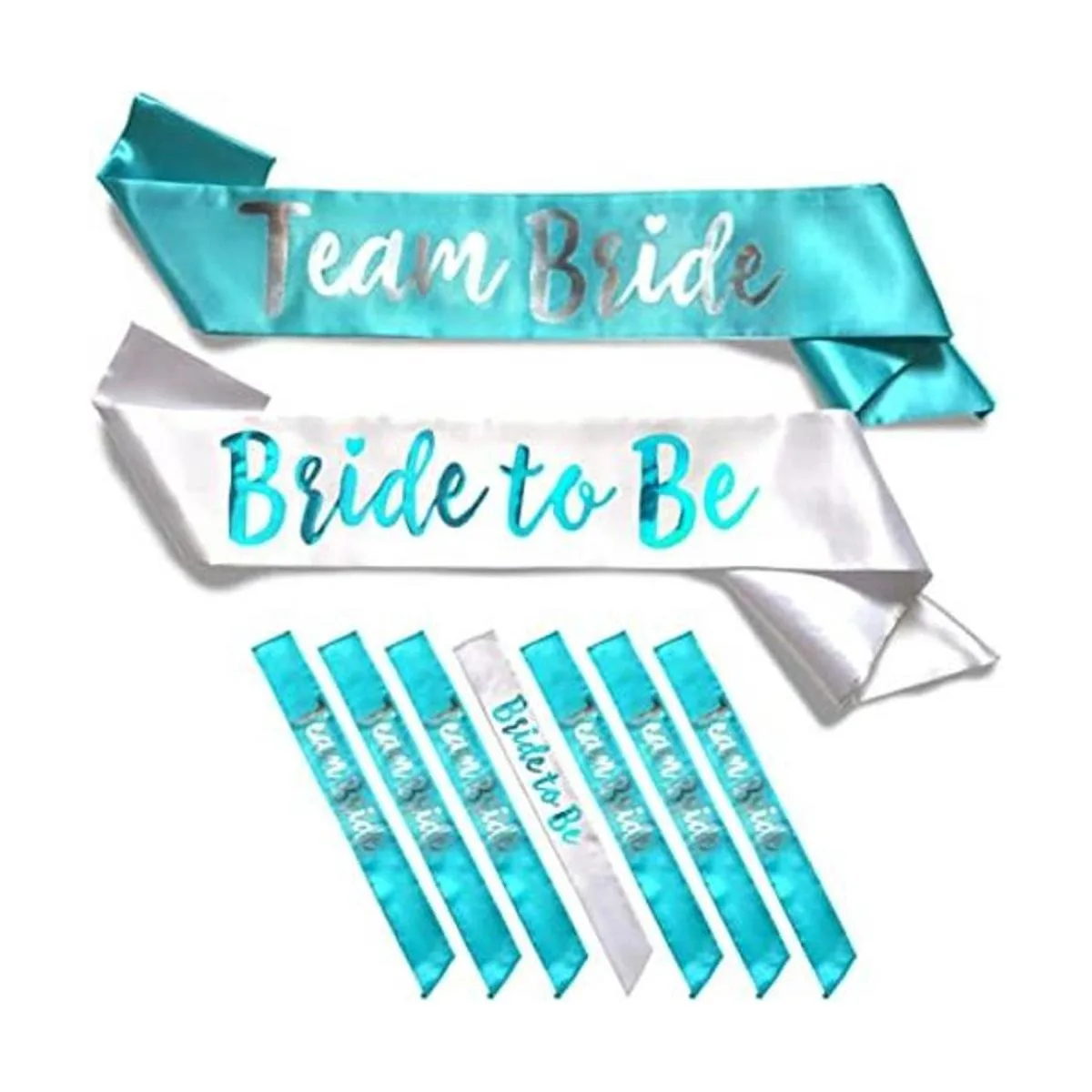 Team Bride Juego de bandas de satén de 7 piezas, sofisticados y divertidos recuerdos de fiesta para despedidas de soltera, despedida de soltera y fiesta de boda juego de 7 piezas, blanco y verde azulado