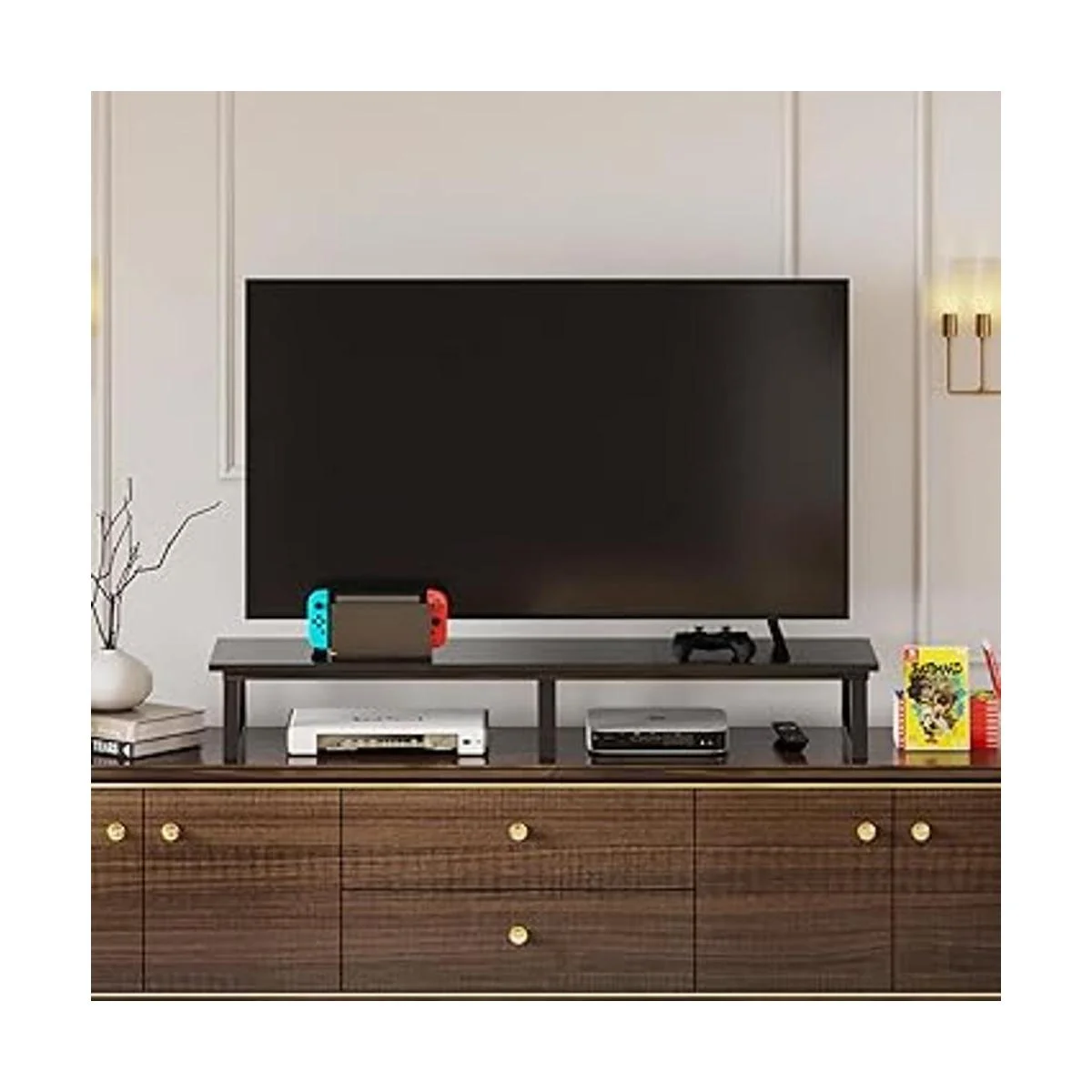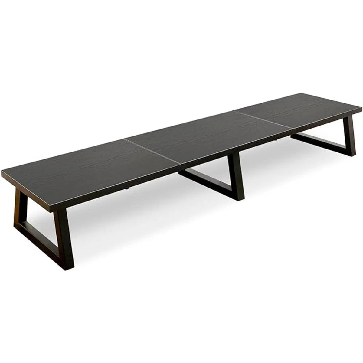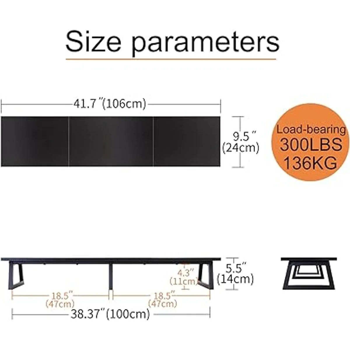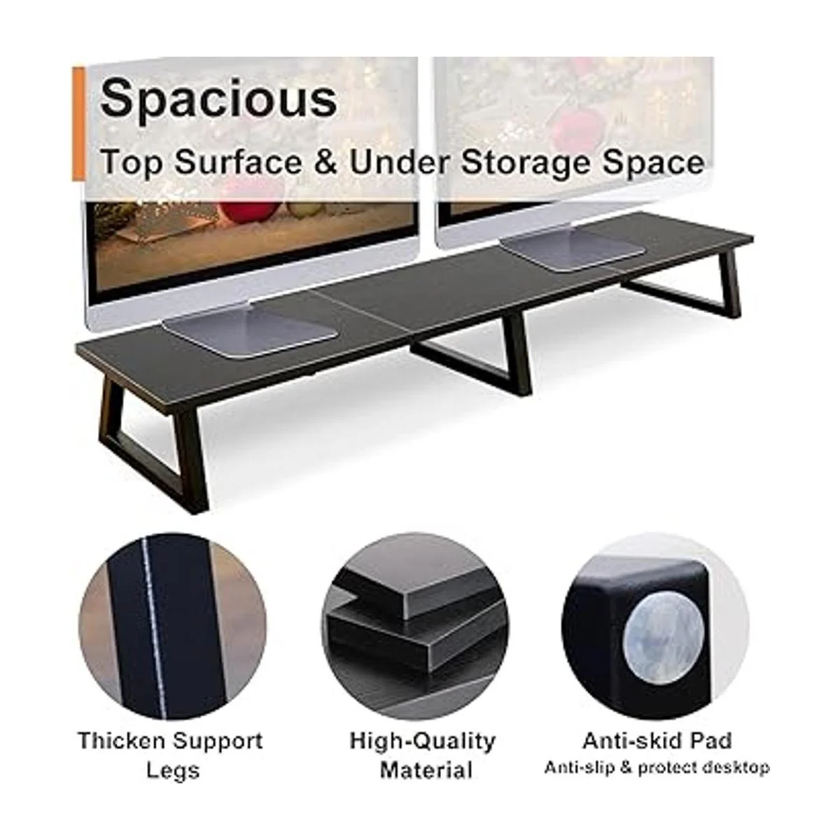 TEAMIX Elevador de monitor doble negro de 42 pulgadas, soporte largo para monitor para 2 monitores, soporte de monitor de madera y acero con almacenamiento grande para TV, computadora portátil, organización de escritorio y oficina