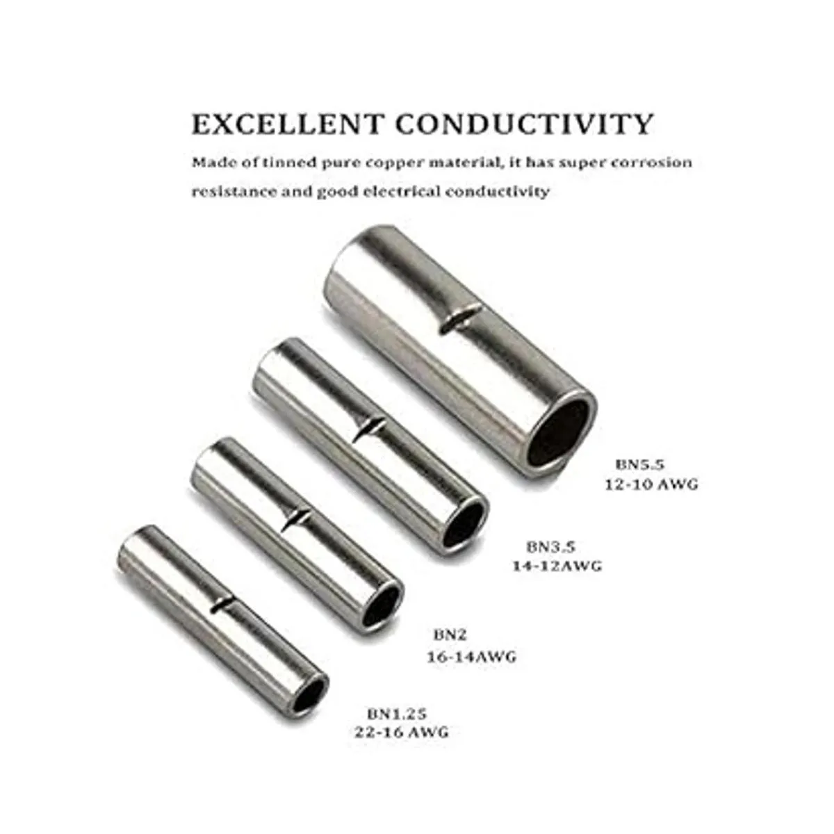 Conexión estable: los conectores de empalme eléctrico no aislados están construidos con una barrera de tope de alambre. Eso no solo es fácil inserción del cable, sino que también proporciona un totalmente conectado y fiable. En el centro, garantiza el efecto de compresión.
