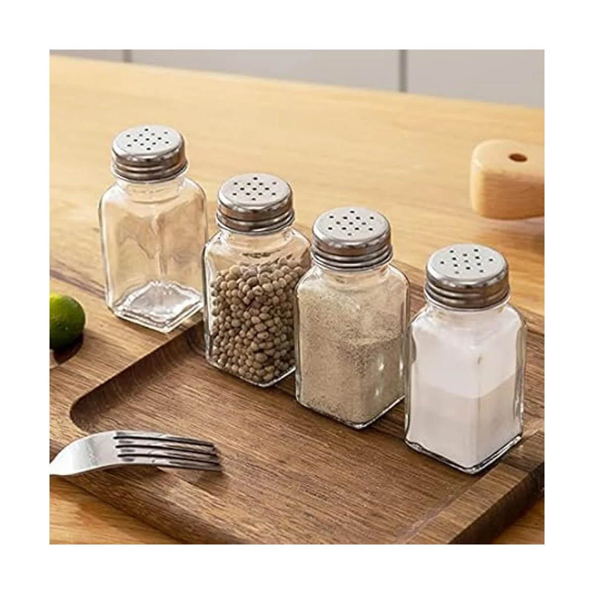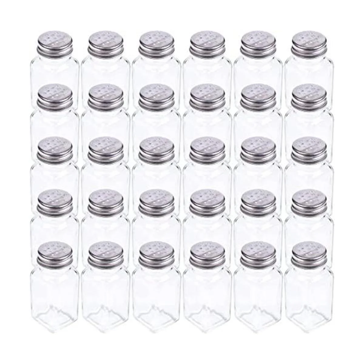 Tebery Juego de 30 saleros y pimenteros de cristal con tapa de hongo de acero inoxidable, botella de especias de 2.7 onzas para cocina, restaurantes y catering, diseño clásico