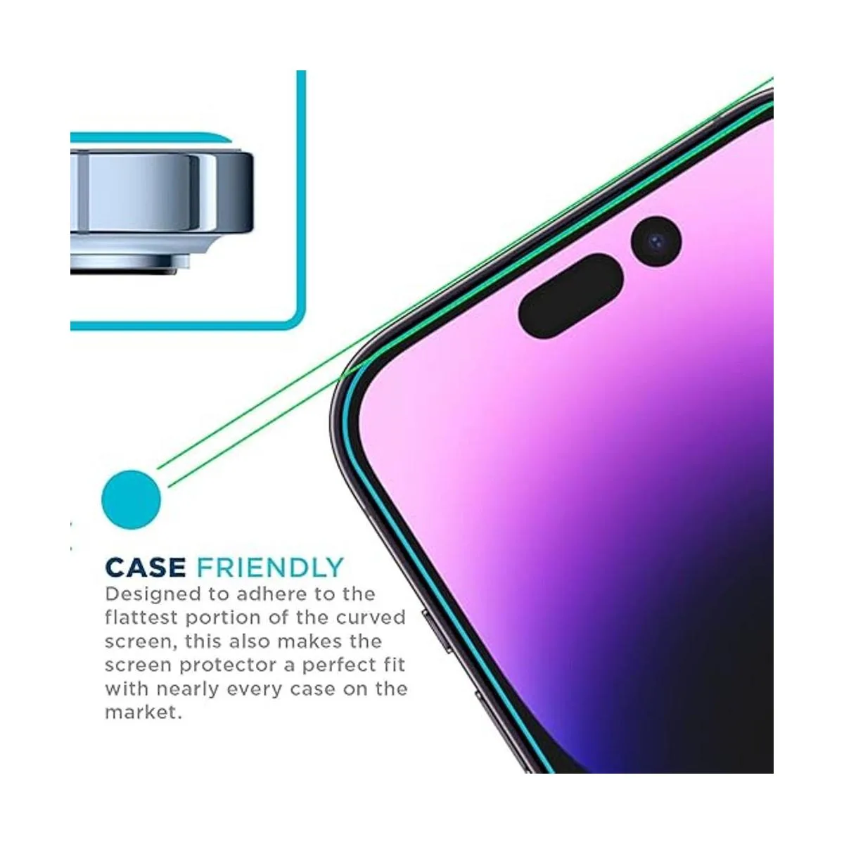 Funciona para iPhone 14 Pro 5G 2022 protector de pantalla de vidrio templado y protector de lente de cámara. Proporciona la máxima protección contra arañazos, rasguños y golpes.