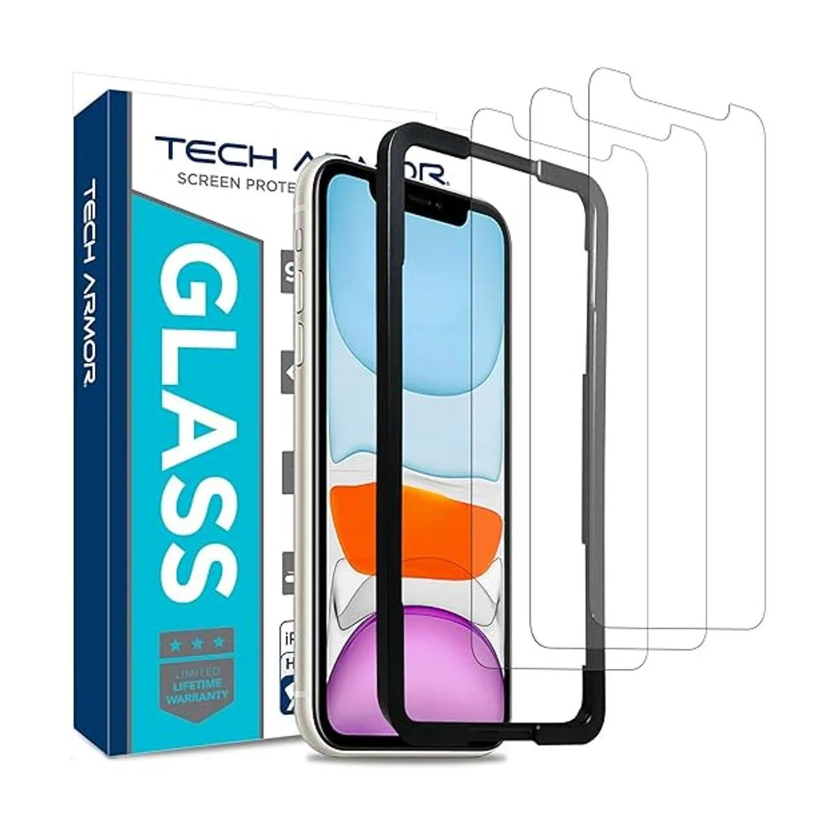 Tech Armor Protector de pantalla de vidrio balístico para iPhone 11 y iPhone XR 6.1 pulgadas, paquete de 3 unidades de vidrio templado, compatible con fundas