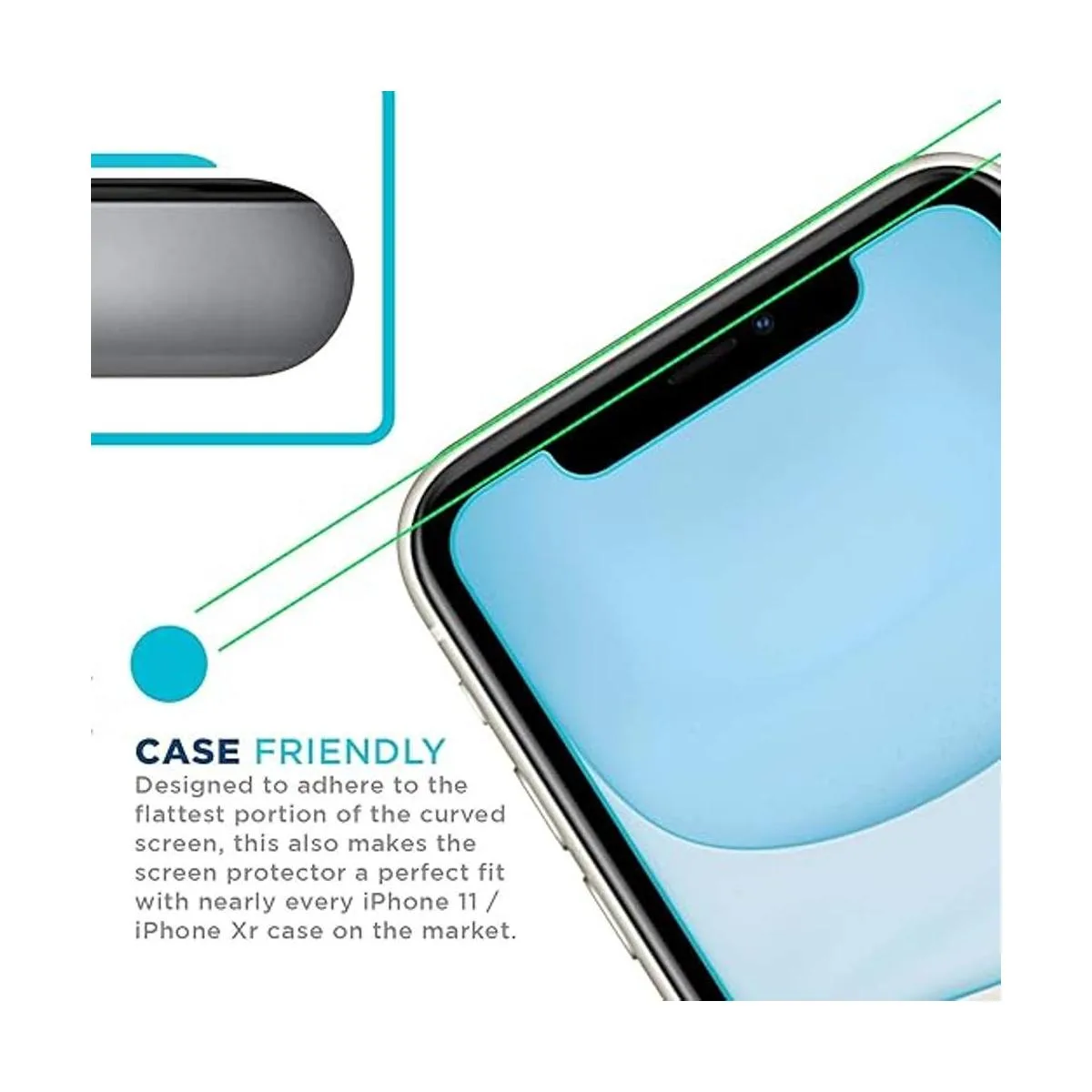 Compatible con fundas. Funciona con la mayoría de las fundas para iPhone y no interfiere con la instalación. Nota importante: la pantalla para iPhone Xr / iPhone 11 tiene bordes curvados y este protector de pantalla solo cubre la superficie plana reduciendo el riesgo de burbujas.