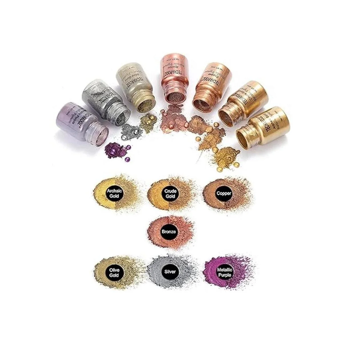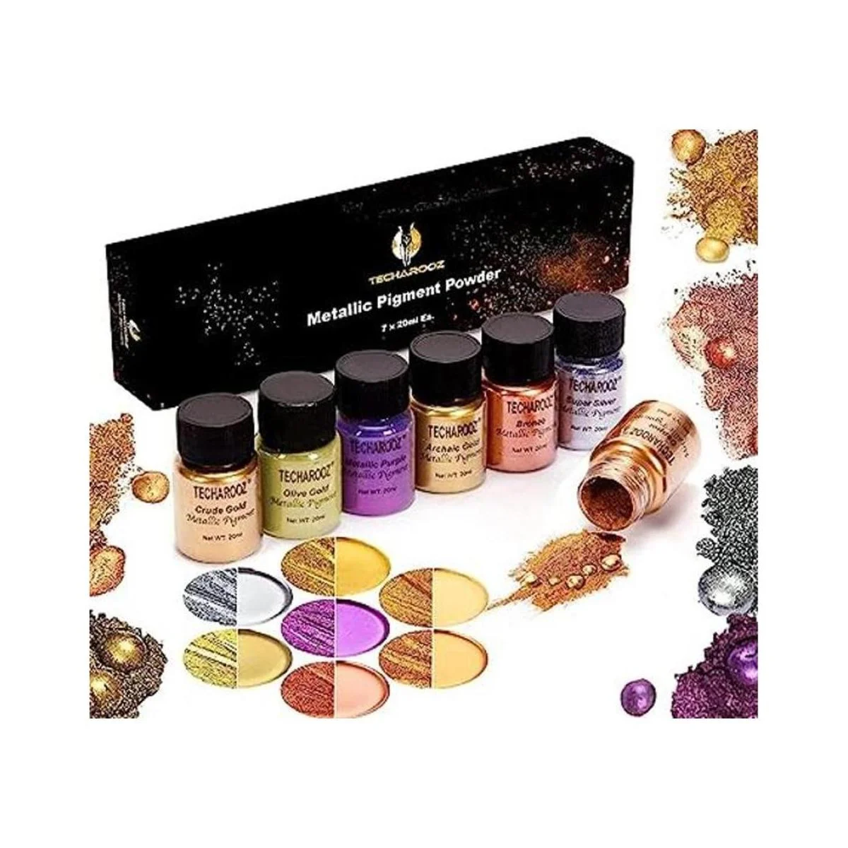 TECHAROOZ Pigmento en polvo metálico, 7 x 0.7 fl oz, tinte metálico fino para resina epoxi, resina UV, encimeras, fabricación de jabón, limo, velas, pinturas acrílicas y otras manualidades