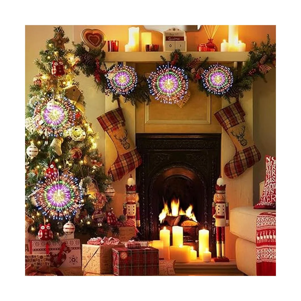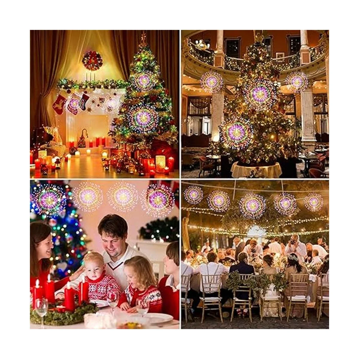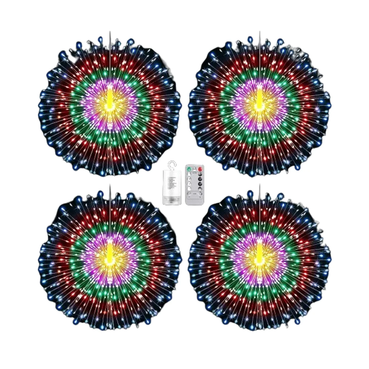 Techip 4 luces de explosión estelar 225 luces LED multicolor de Navidad que funcionan con pilas, luces colgantes con control remoto, 8 modos, impermeables, alambre de cobre, luces de hadas para decoración de Navidad de Diwali