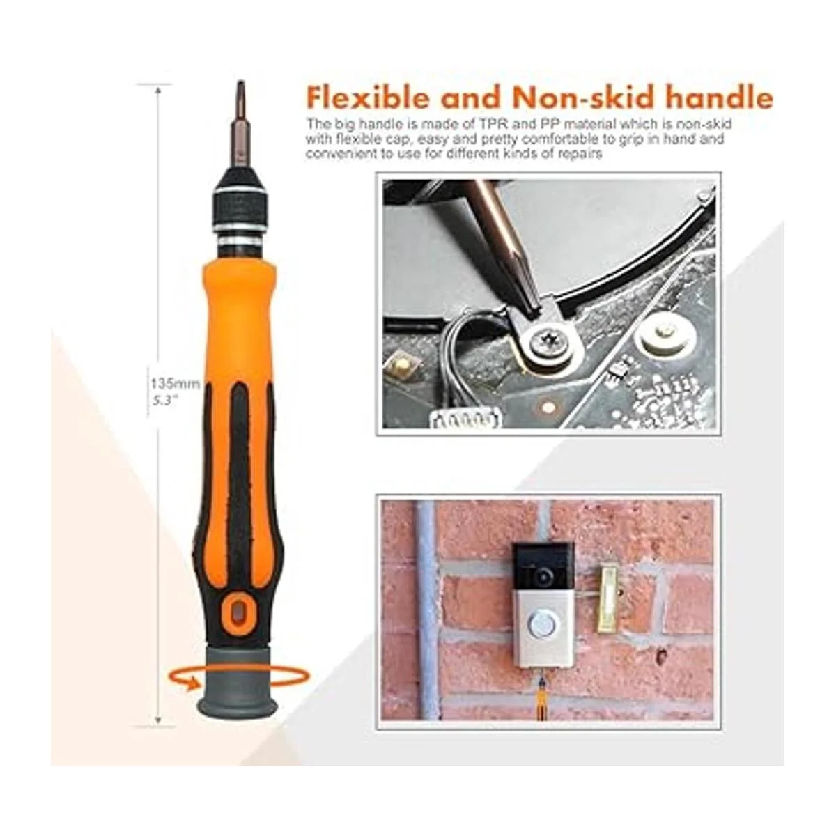 Mango flexible y grande: este mango de destornillador está hecho de material TPR y PP que es antideslizante con tapa flexible, fácil y muy cómodo de agarrar en la mano y cómodo de usar para diferentes tipos de reparaciones.