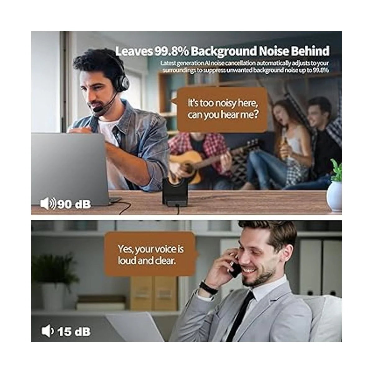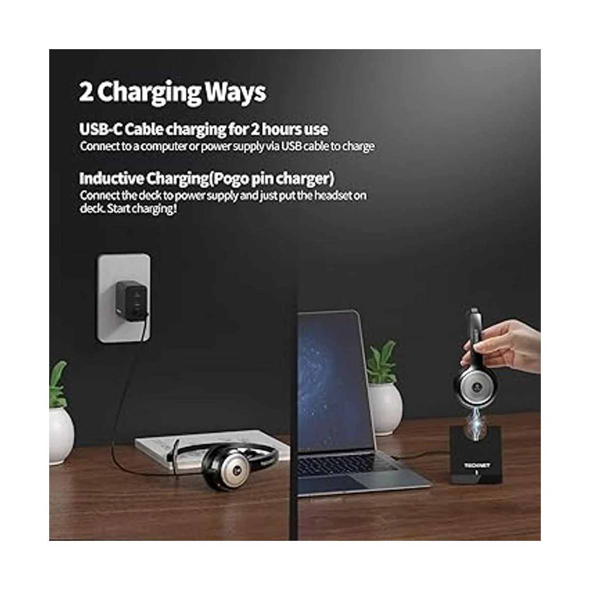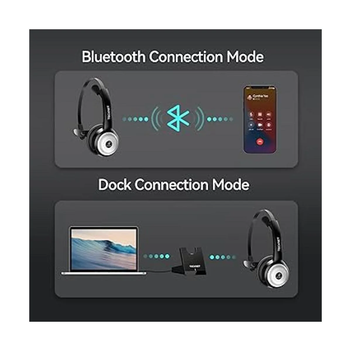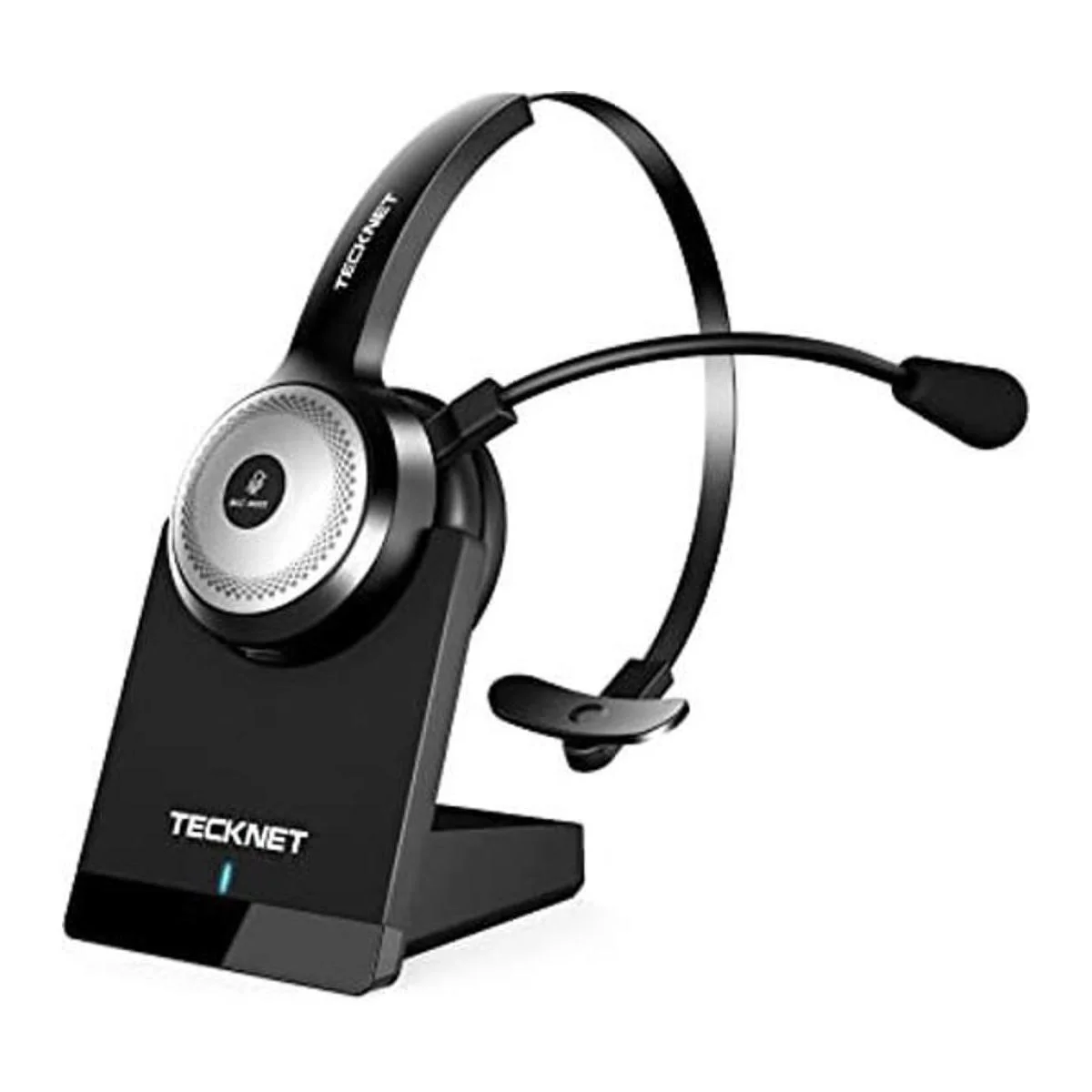 TECKNET Auriculares inalámbricos Bluetooth 5.0 con micrófono de cancelación de ruido AI y base de carga para laptop, auriculares Bluetooth en la oreja, auriculares para PC, teléfono celular, Skype, batería durante todo el día