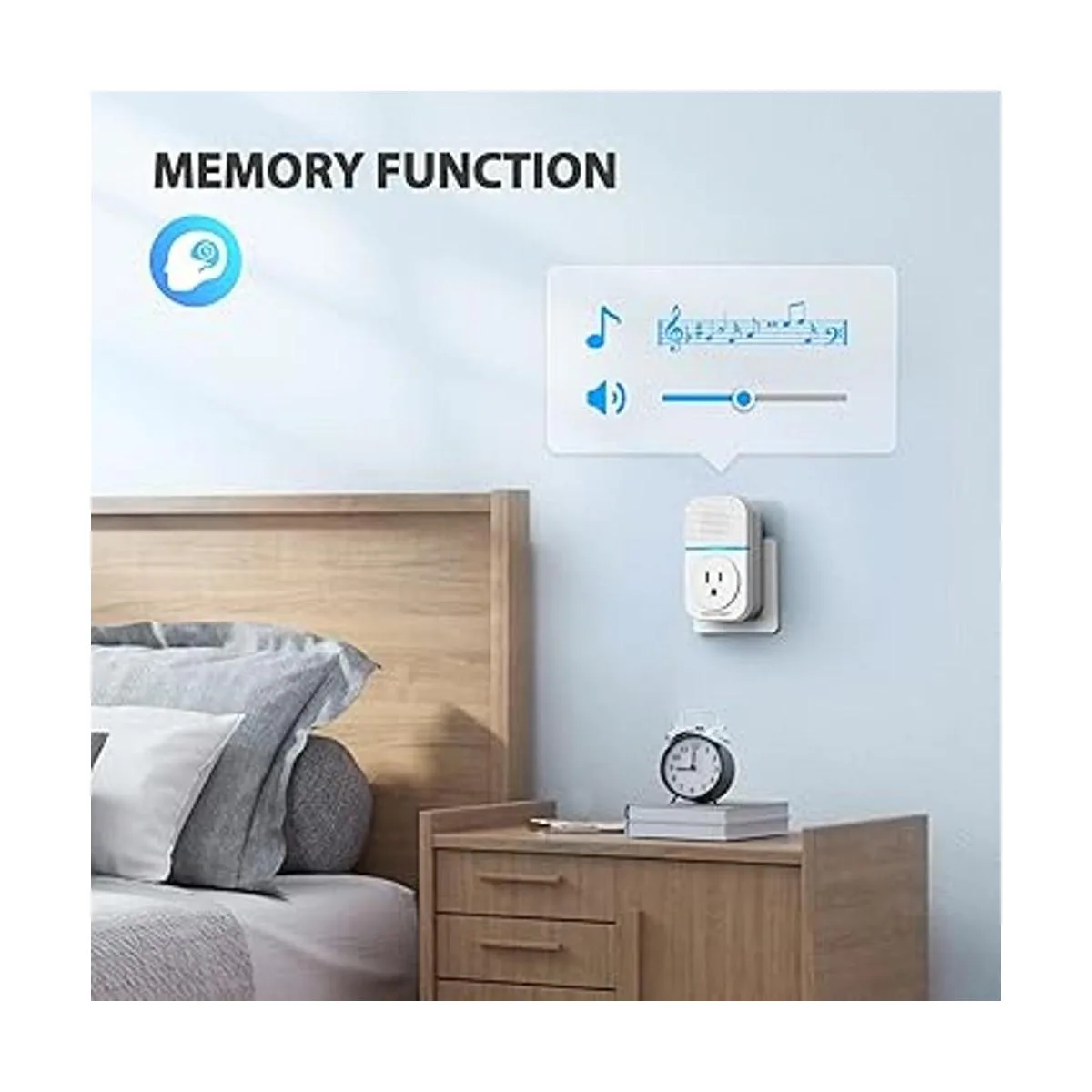 Función de memoria y fácil de instalar: simplemente conecta los timbres en un enchufe y fija el botón en una pared con los accesorios proporcionados; no interfiere con otros equipos en tu hogar o los de tus vecinos, y nunca te perderás un visitante. El timbre recuerda tu última melodía y nivel de volumen después de un corte de energía; no hay necesidad de restablecer a tus ajustes anteriores