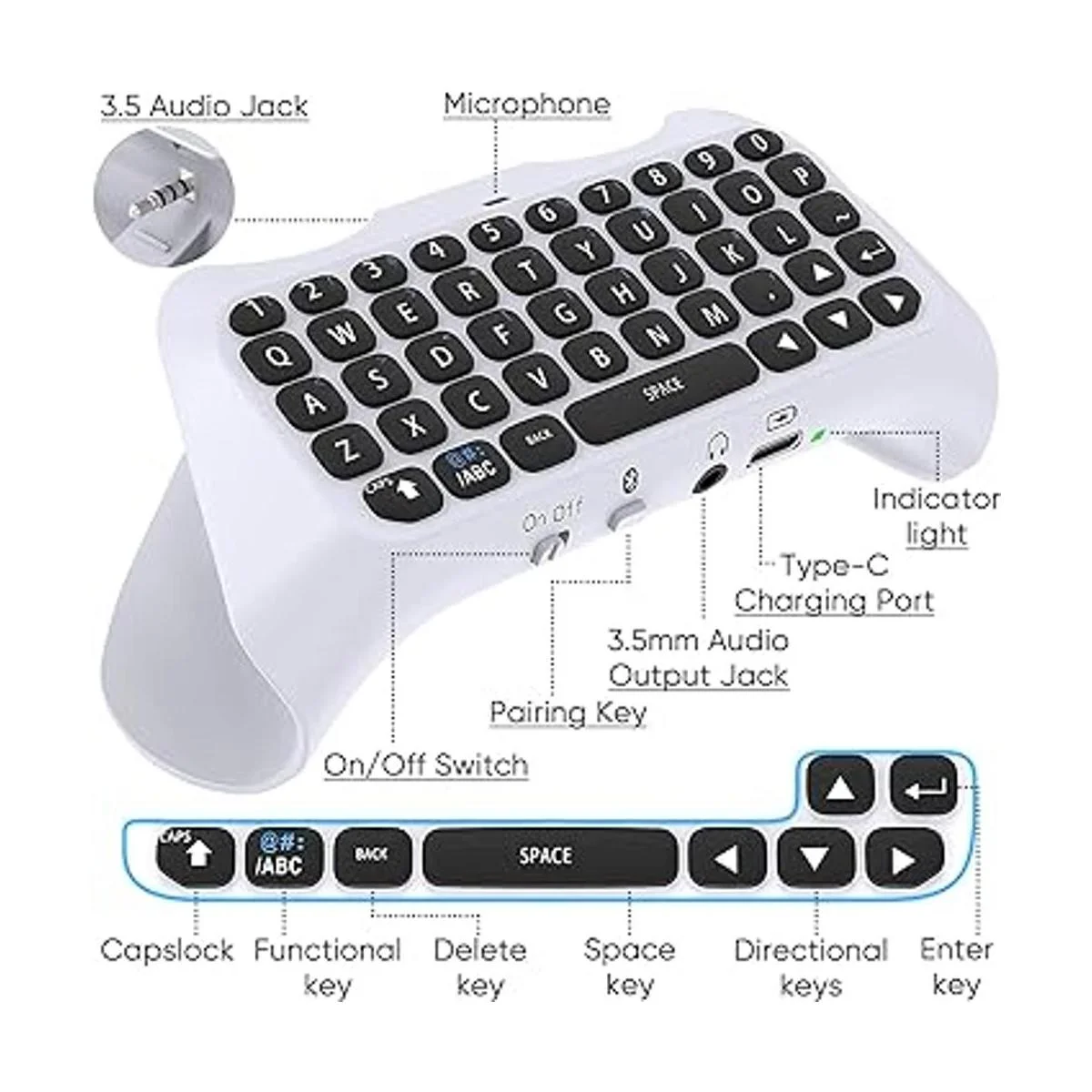 Teclado de control inalámbrico para PS5, Bluetooth 3.0 Mini teclado de chat portátil con altavoz integrado y conector de audio de 0.138 in para Playstation 5 tablero de chat de voz para mensajería y juegos de chat en vivo