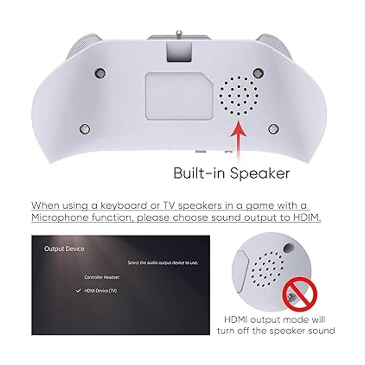 Altavoz integrado: el altavoz integrado permite a los usuarios escuchar todo el audio de chat directamente desde el teclado sin usar auriculares, también puedes desactivar esta función para el menú de configuración de PS5 y utilizar un auricular externo.